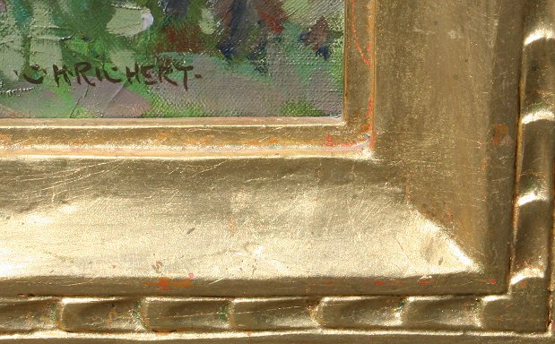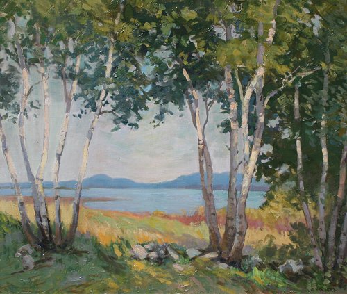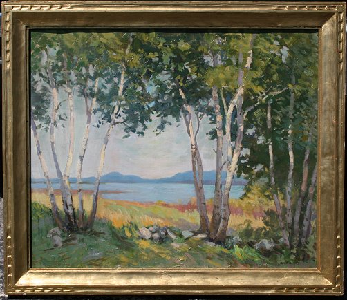 RICHERT, Charles Henry, (American, 1880-1974): ''Side Hill Birches'', Arlington, Mass, Lakeside Landscape, OIL/Canvas, 25'' x 30'', period frame, 30'' x 35''.