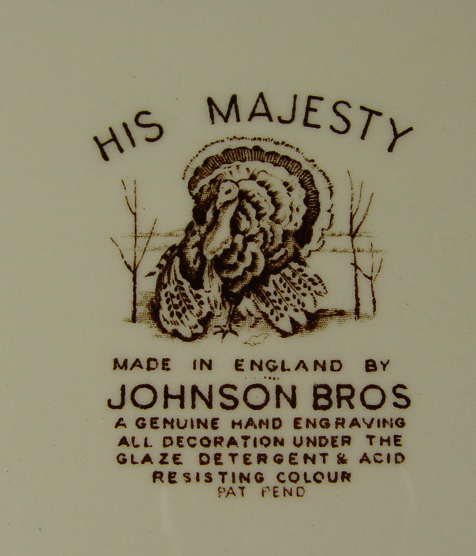JOHNSON BROS HIS MAJESTY TURKEY PLATTER, GRAVY AND PLATES: The set includes the large 20'' platter, 8 plates (10.5''), the gravy and underplate.