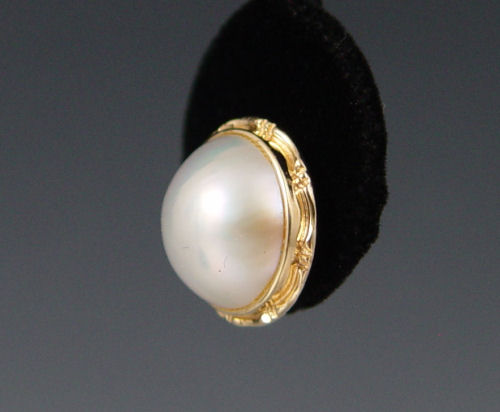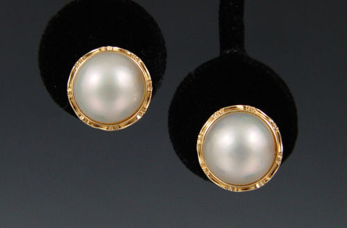 14K 12MM MABE PEARL EARRINGS: 14K yellow gold earrings contain two 12.00 mm mabé pearls. Post and nut closures. Mtg.Weight: approx. 2.0 grams.
