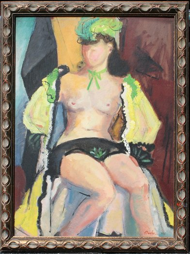 BARBER, John, (American, 1898-1965): Seated Female Nude, OIL/Board, 30'' x 22'', signed, carved frame, 33 1/2'' x 25 1/2''.