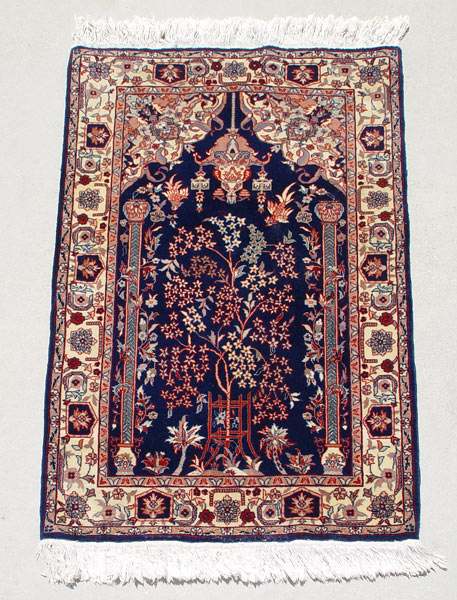 SINO-PERSIAN PRAYER RUG: Hanging lantern design, 2' 8'' x 4' 1''