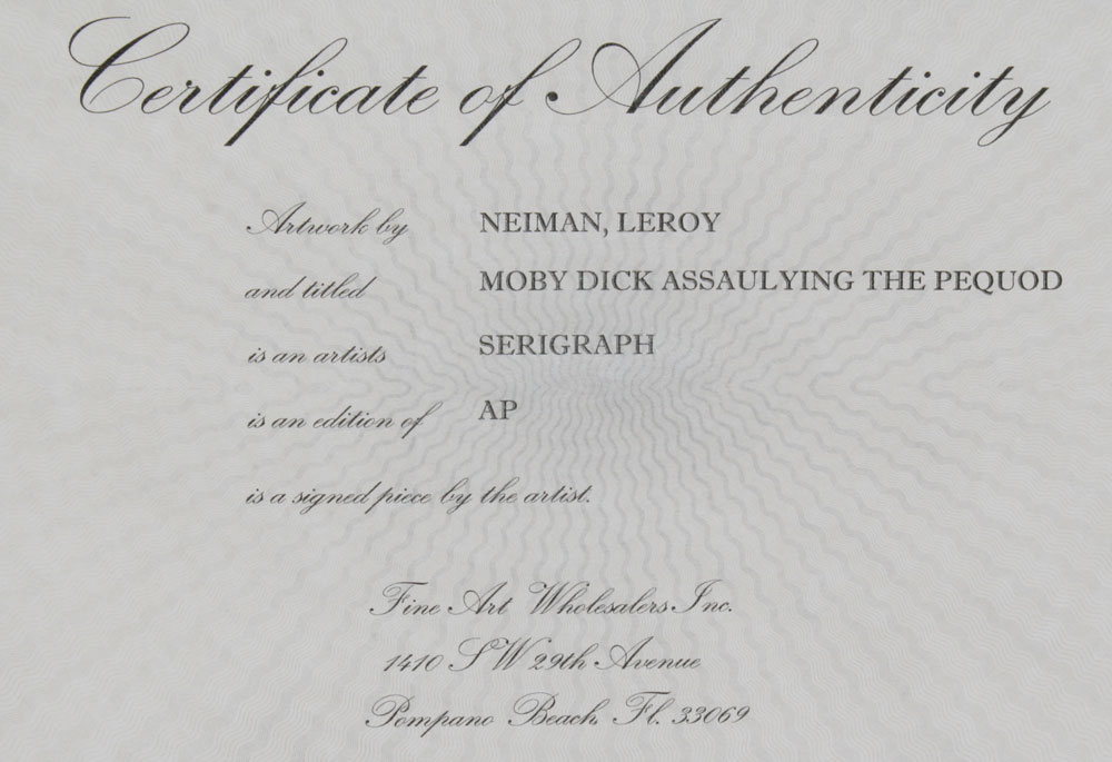 NEIMAN, Leroy, (American, 1927-): ''Moby Dick'', Serigraph, sight size 20'' x 32'', Artist Proof, pencil signed, fine contemporary frame with custom fabric matting, 34 1/2'' x 45''.