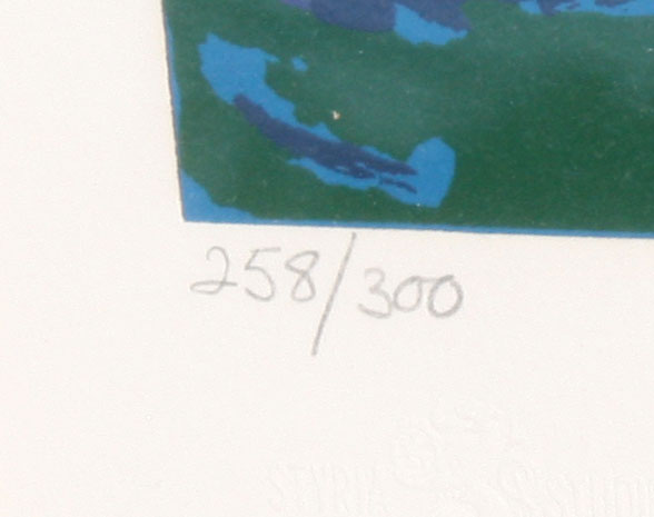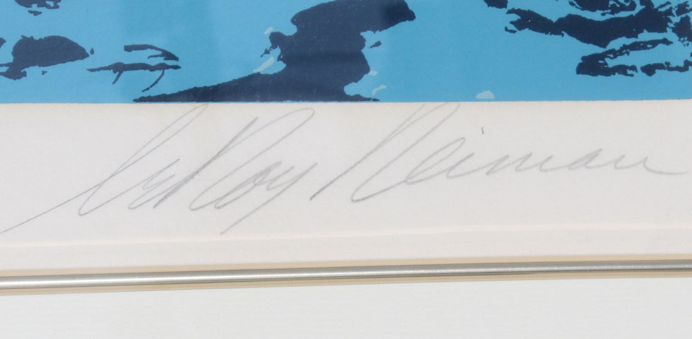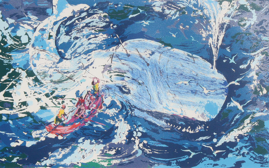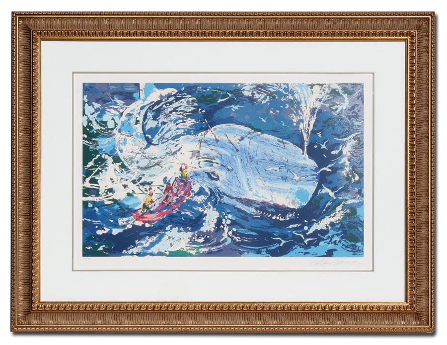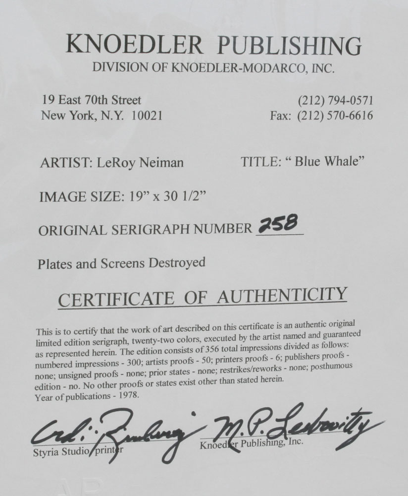 NEIMAN, Leroy, (American, 1927-): ''Blue Whale'', Serigraph, sight size 21'' x 32 1/2'', pencil signed, numbered 258/300, Styria blindstamp lower left, fine contemporary frame, 35 1/2'' x 47'', Knoedler certificate affixed verso.