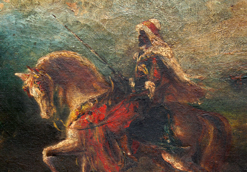 LUMLEY, Augustus Savile, (Britain,-1899): Orientalist Arab on Horseback, Oil/Canvas, 10'' x 12'', signed, unframed.