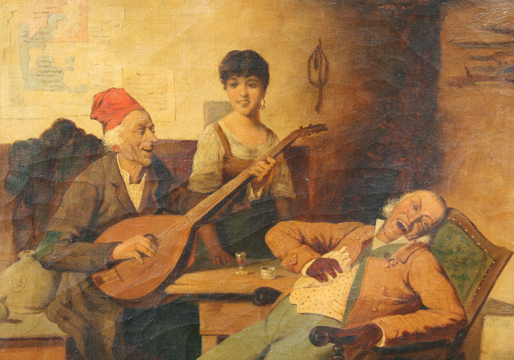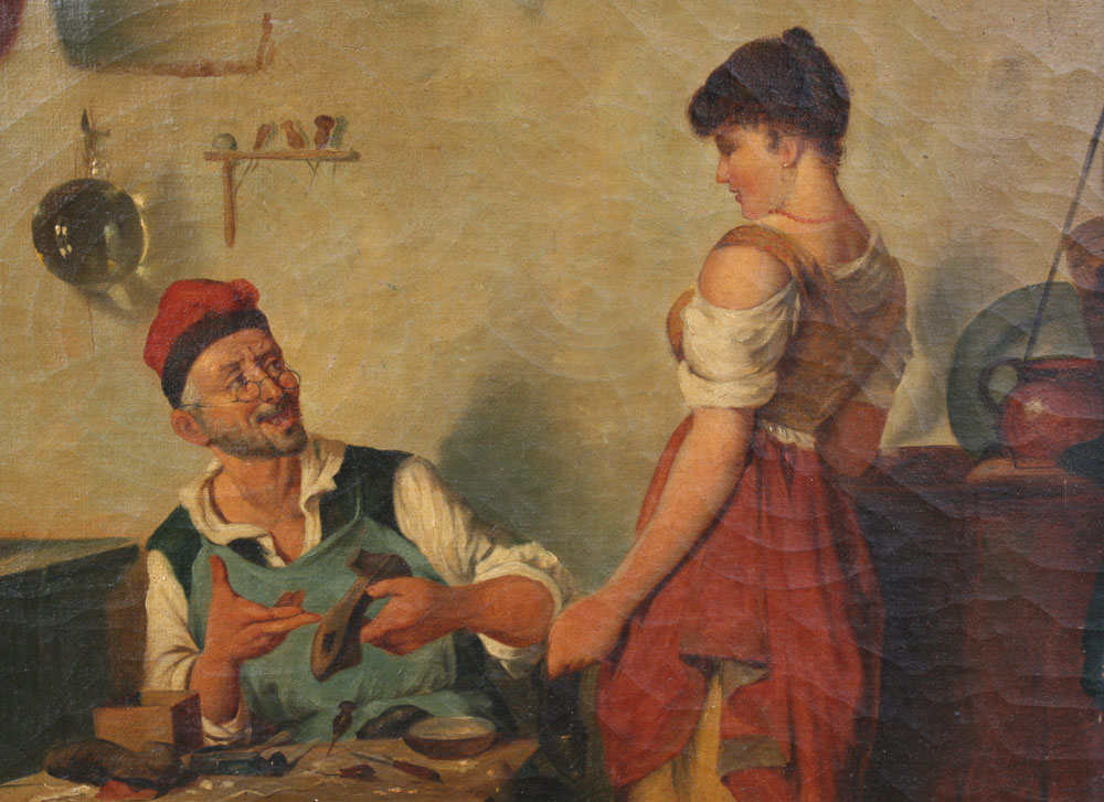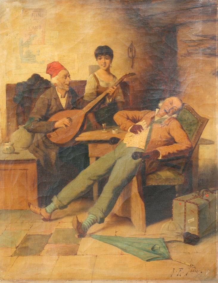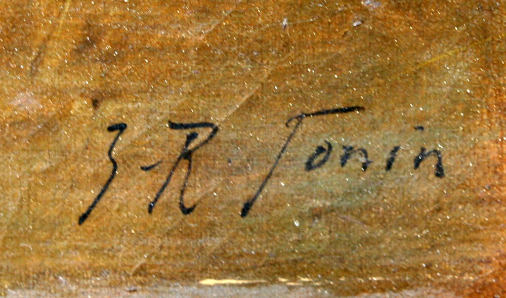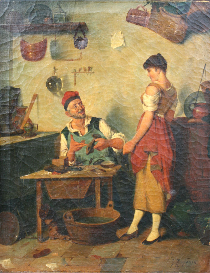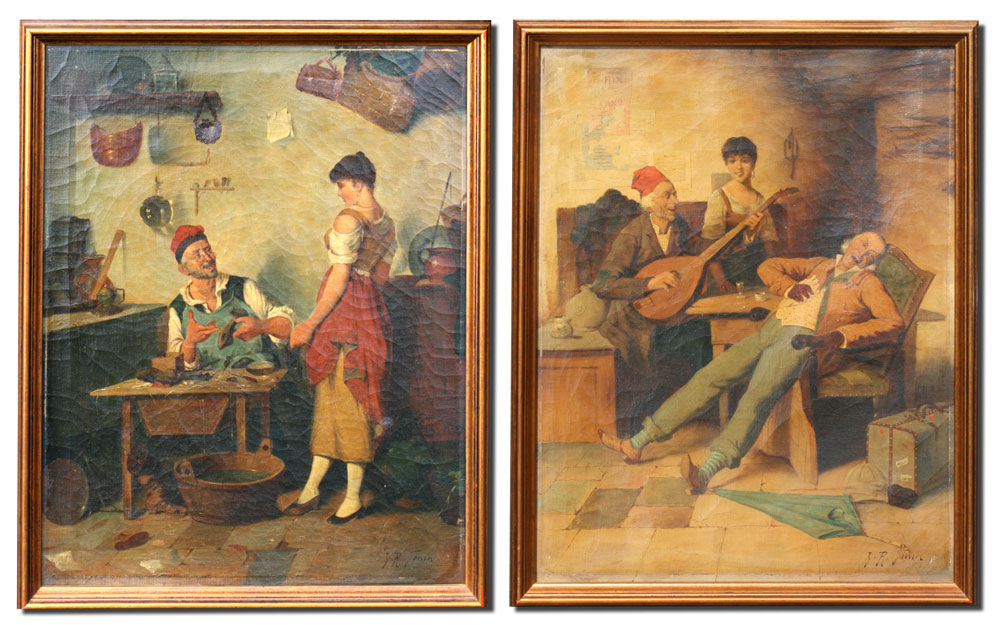 PAIR OF ILLEGIBLY SIGNED 19TH C. GENRE PAINTINGS: Oils/Canvas signed Janin?, 19'' x 15'', period frames, 28 1/2 x 16 3/4''.