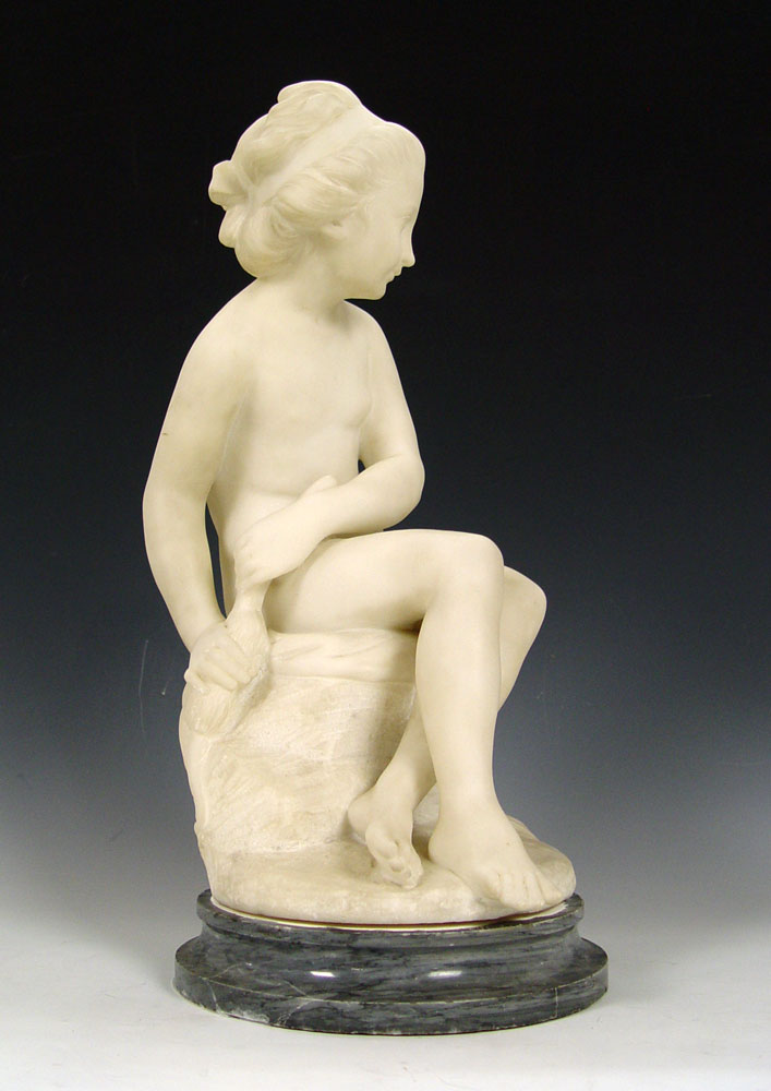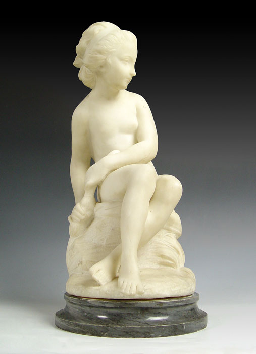 FALCONET, Etienne Maurice, after, (1716-1791): Psyche, Marble, Incised Signature, 19 1/2'' h., marble plinth with chips, 2 1/4'' h., CIRCA 1900.