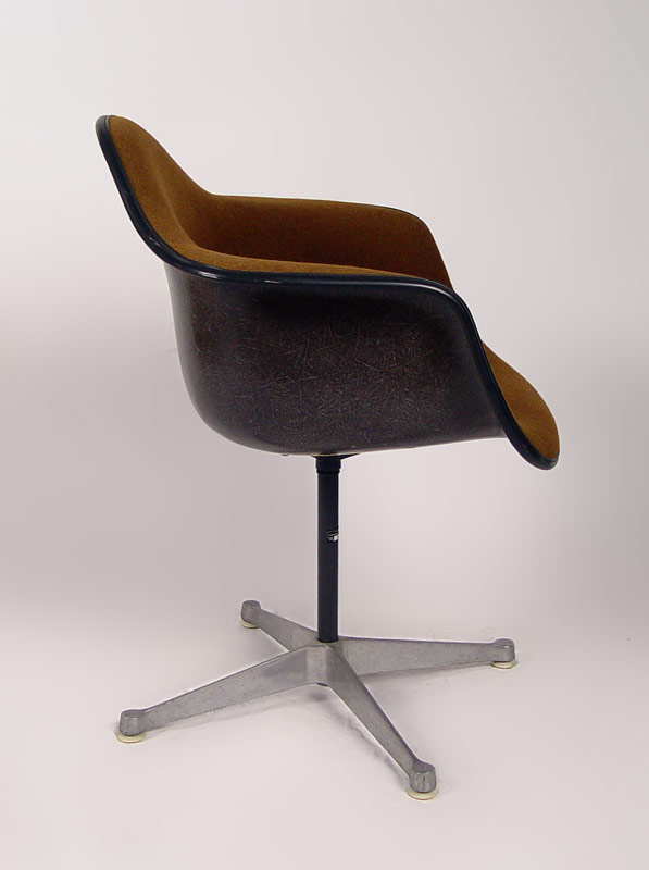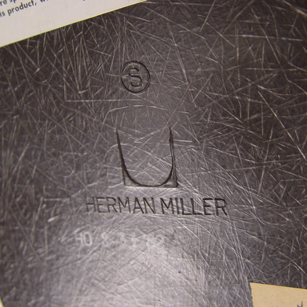 HERMAN MILLER SHELL CHAIR: Upholstered molded plastic shell with Herman Miller mark. Measures 32'' x 25'' x 24''.