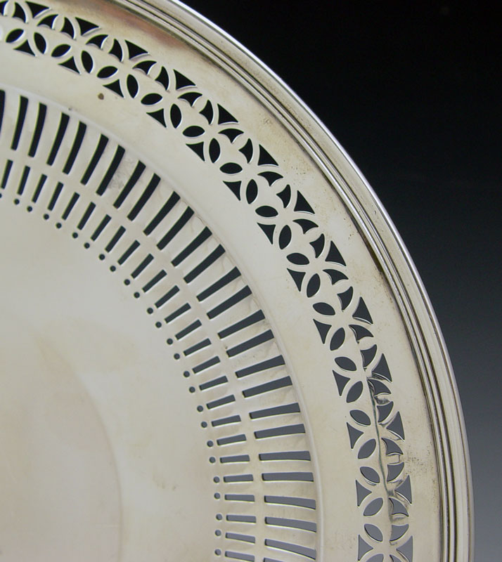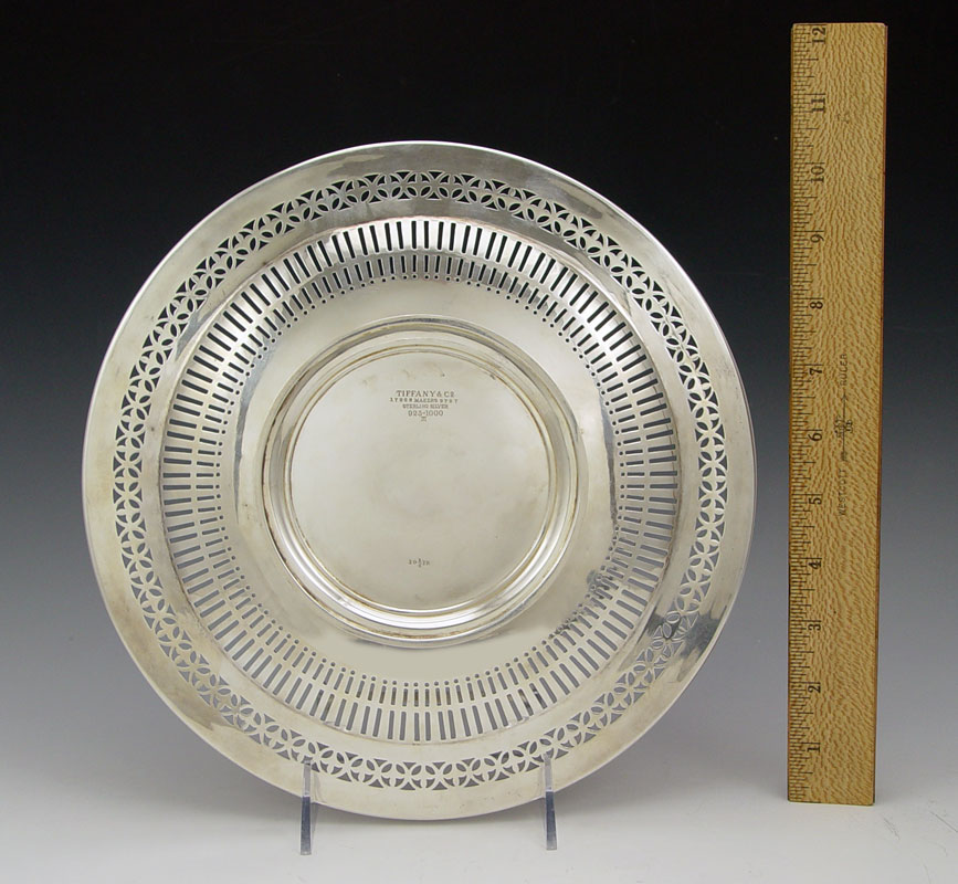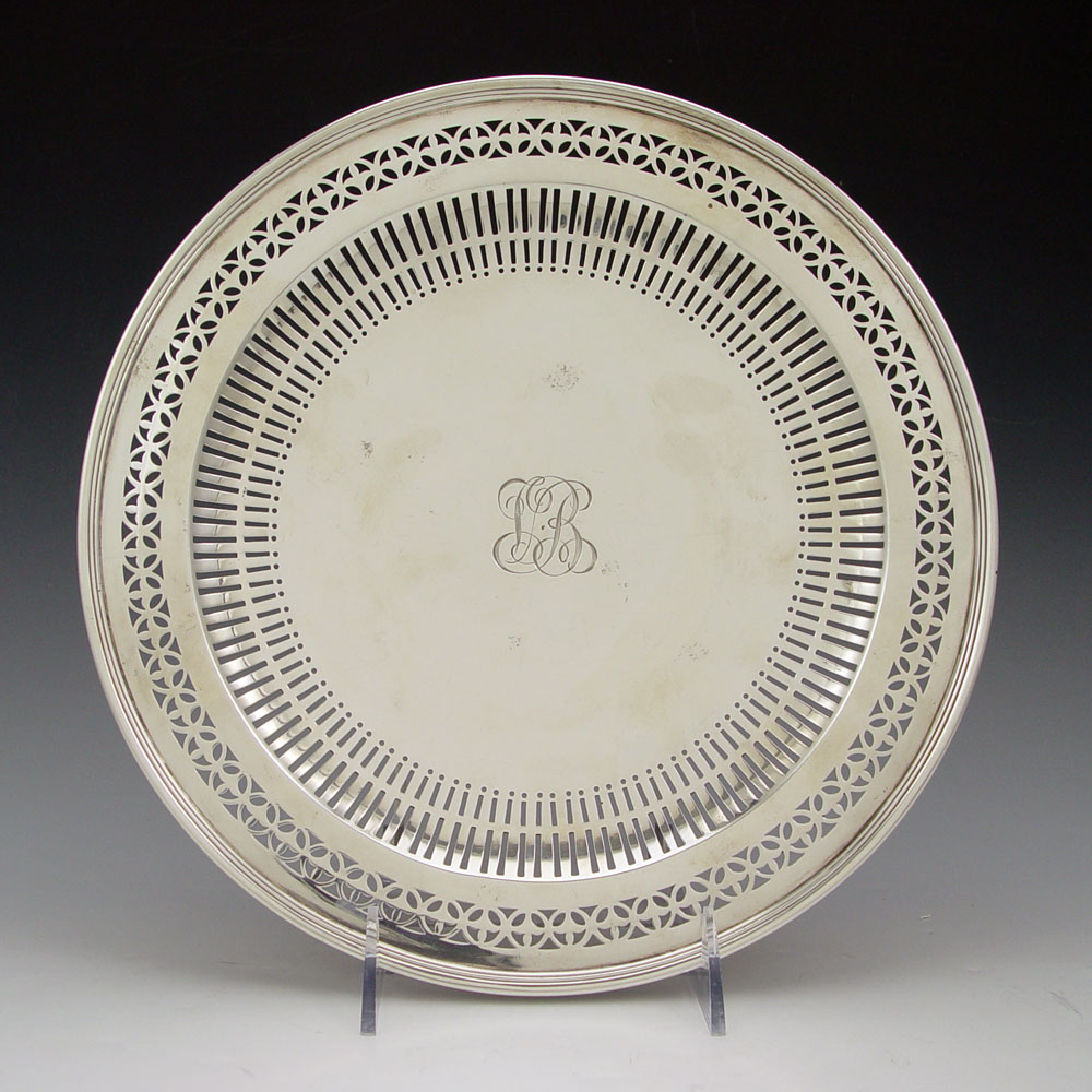 TIFFANY & CO. STERLING RETICULATED TRAY: Early 20th century, 10 1/2'' dia. Well marked Tiffany & Co., monogrammed. Approx. 18 troy oz.