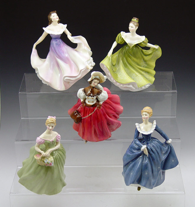 COLLECTION OF 5 ROYAL DOULTON FIGURINES: To include 1) ''The Skater'' HN 2117, 7 1/4'' h. 2) ''Clarissa'', HN 2345, 7 1/2'' h. 3) ''A Gypsy Dance'' HN 2230, 7'' h. 4) ''Fragrance'' HN 2341 5) ''Lynne'' HN 2329, 7 1/4''.