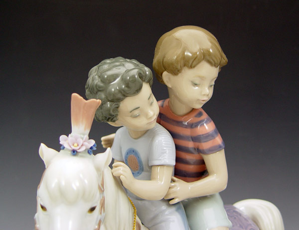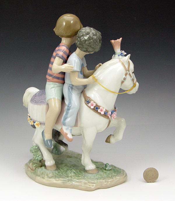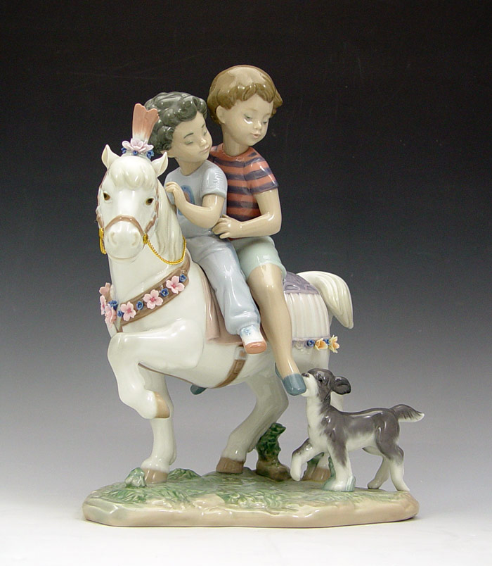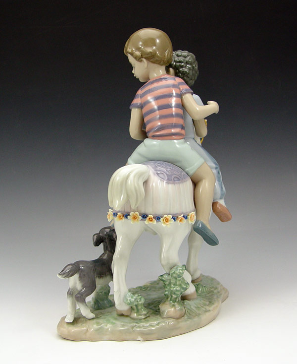 LLADRO FIGURAL GROUP PONY RIDE 6430: Retired in 2000 with then retail of $825. 10 1/4'' tall, 8 1/4'' length.