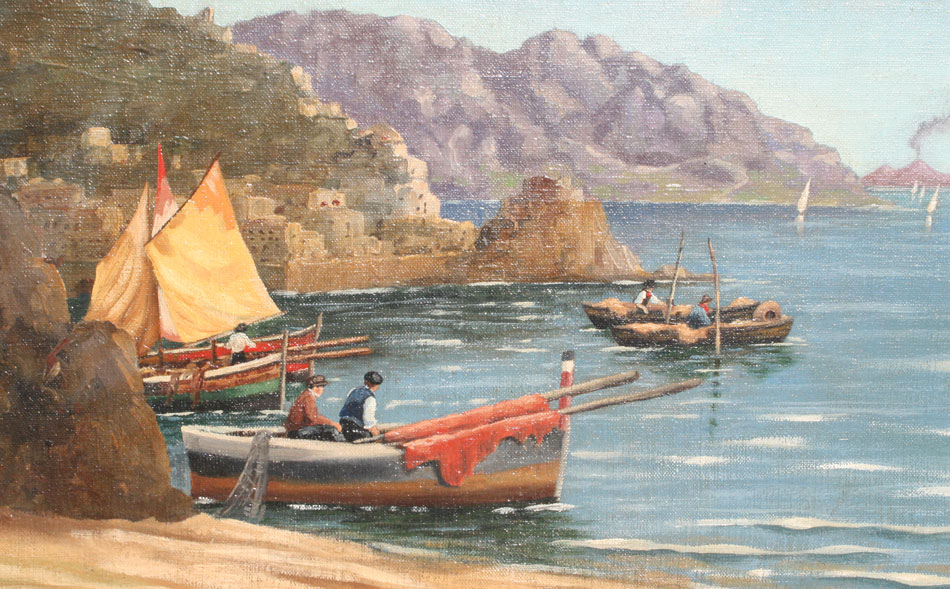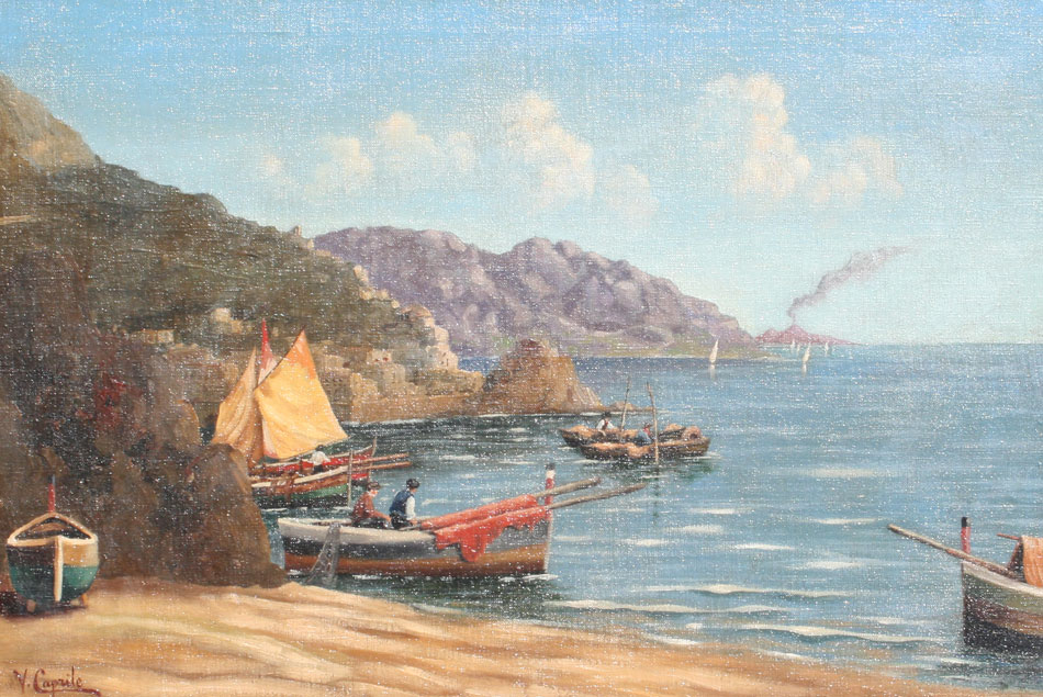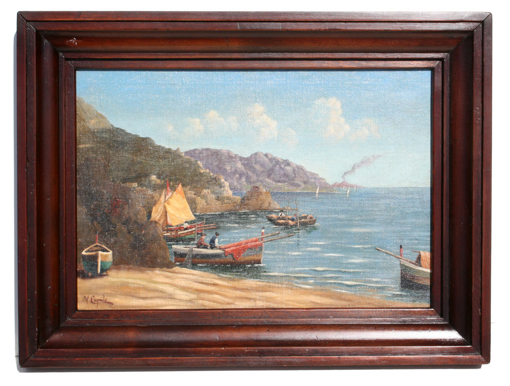 ITALIAN HARBOR PAINTING SIGNED CAPRILE: OIL/ Canvas, 19 3/4'' x 29 1/4'', framed, 27'' x 37''.