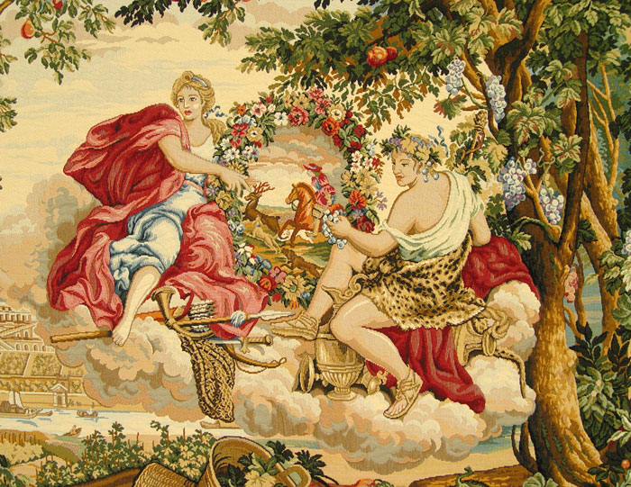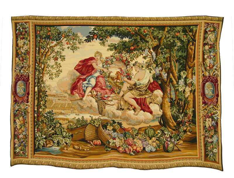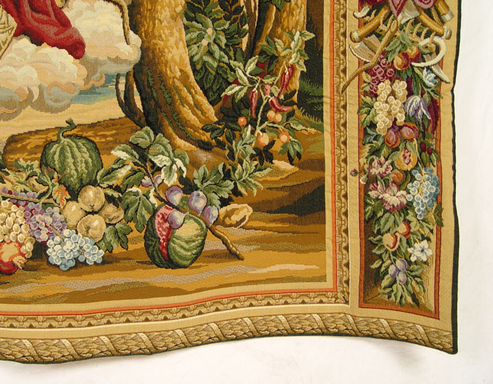 LARGE BELGIAN TAPESTRY: Allegorical scene, 52'' x 73'' with built in rod pocket.