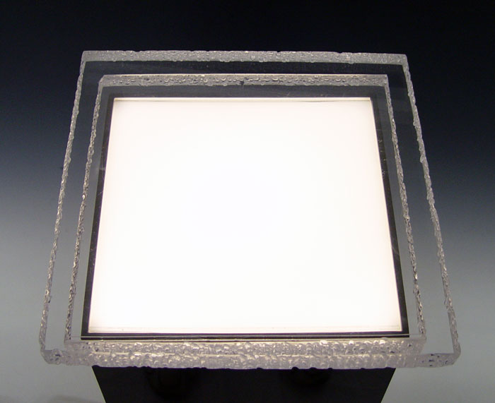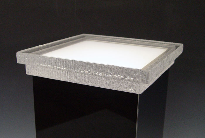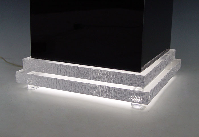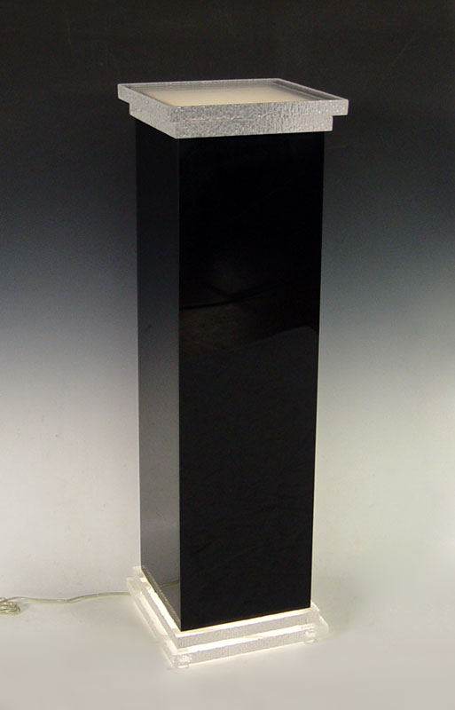 BLACK ACRYLIC WITH CLEAR ICE TEXTURE PEDESTAL: Approx. 40'' tall, the top 12'' square.