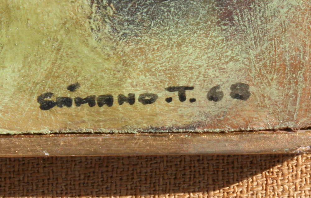 TORRES, Jose Samano, (Mexican, 1942-): Abstract Composition, Oil/Board, 5'' x 10 3/4'', signed and dated, framed, 10 1/2'' x 16''.