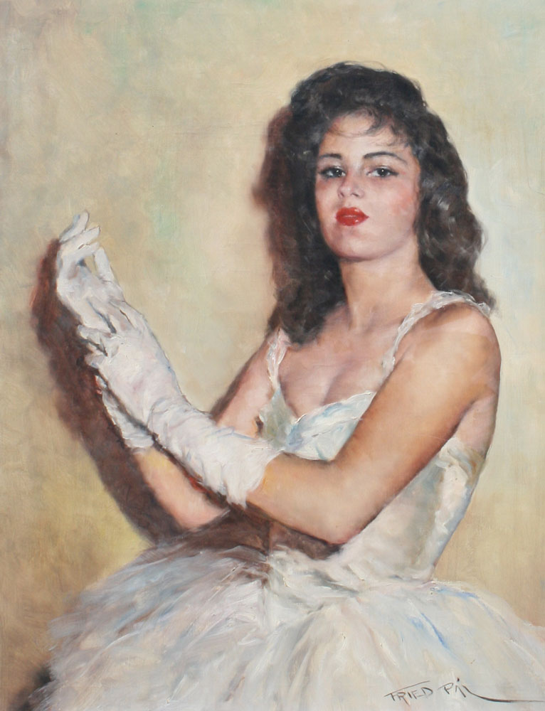 FRIED, Pal, (Hungarian, 1893-1976): ''Barbara-White Gloves'', OIL/canvas, 30'' x 24'', signed, period frame, 38'' x 32'', titled verso.