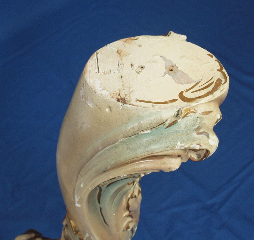 CONDITION: Few stains to marble, some separation to joints and chips to paint on base.