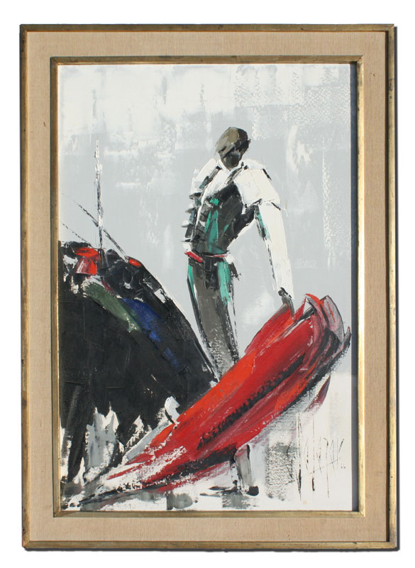 SALAZAR, Alfredo Garcia, (Spanish, 1924-): ''Natural Pase'', Depicting Matador and Bull, OIL/Canvas, 36'' x 24'', signed, titled verso, dated '66, framed, 41 1/2'' x 29 1/2''.