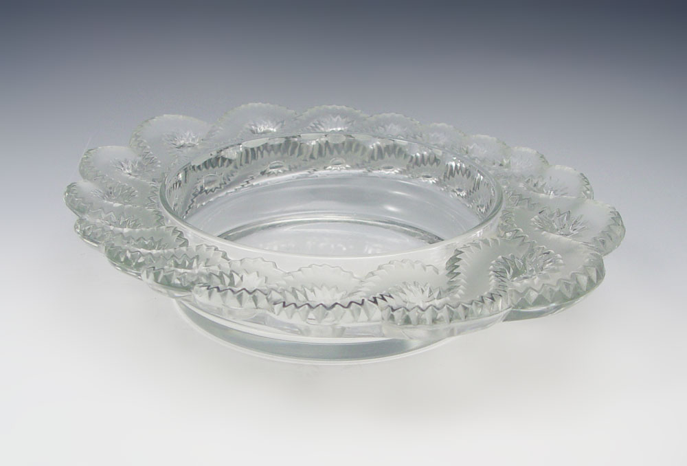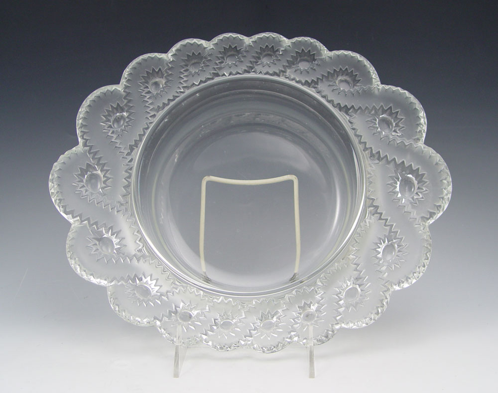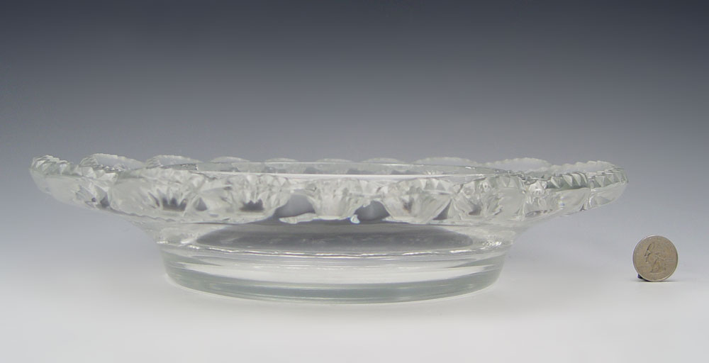 LALIQUE FRENCH CRYSTAL BOWL: Frosted and clear, signed Lalique Cristal France. 2.5'' h. x 12'' dia. overall.