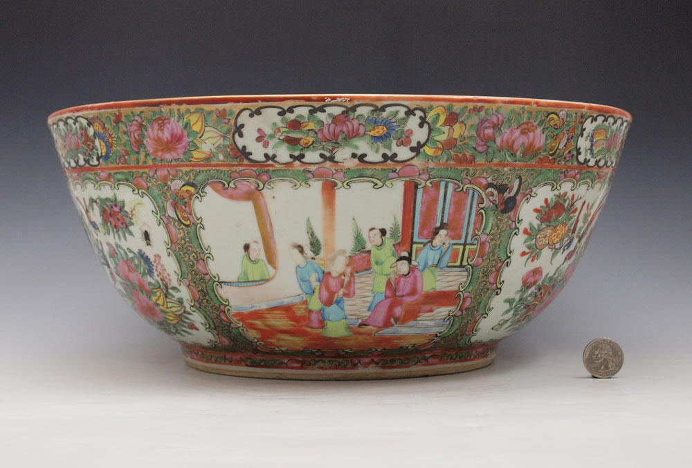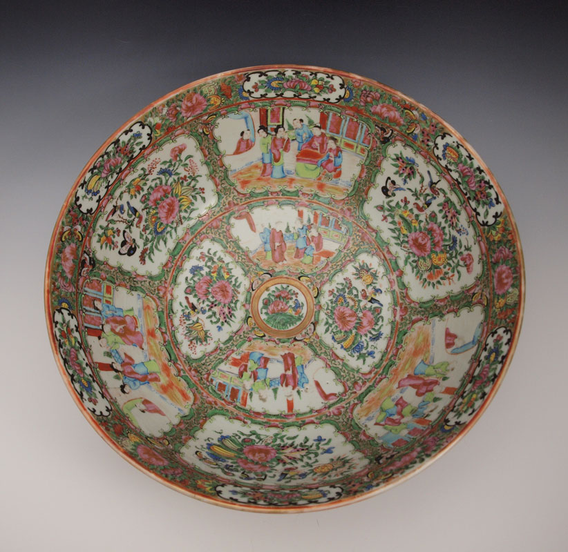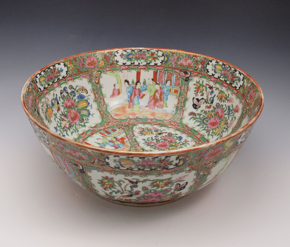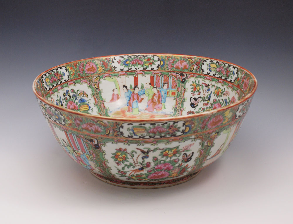 CHINESE ROSE MEDALLION PUNCH BOWL: Approx. 15 1/2'' dia., 6'' tall.