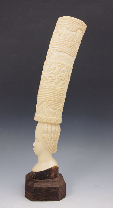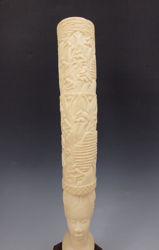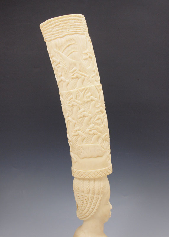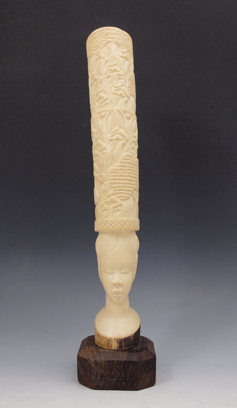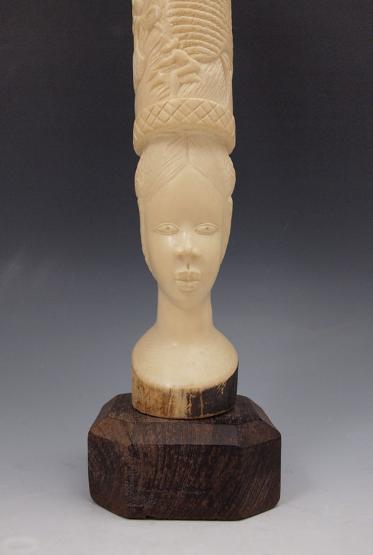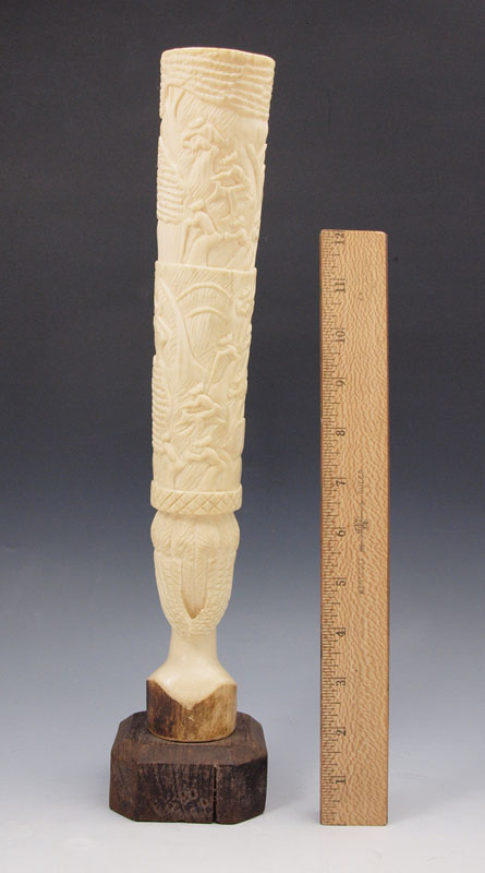 AFRICAN CARVED IVORY TUSK: Ivory measures 14 1/2'' h.