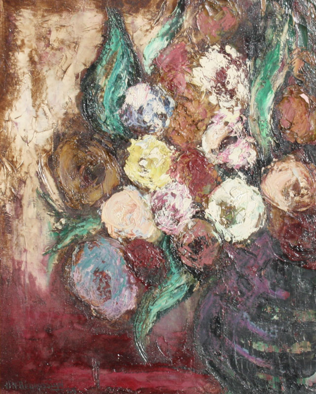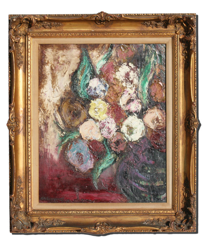 BEDROSSIAN, Nubar, (French, -1992): ''Bouquet Romantique'', Floral Still Life, OIL/Canvas, 20'' x 16'', signed lower right, signed and titled verso, dated '65, encased in pierce carved and gilded frame with minor wear, 27'' x 23''.