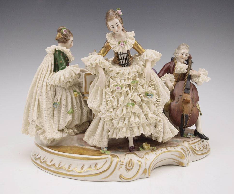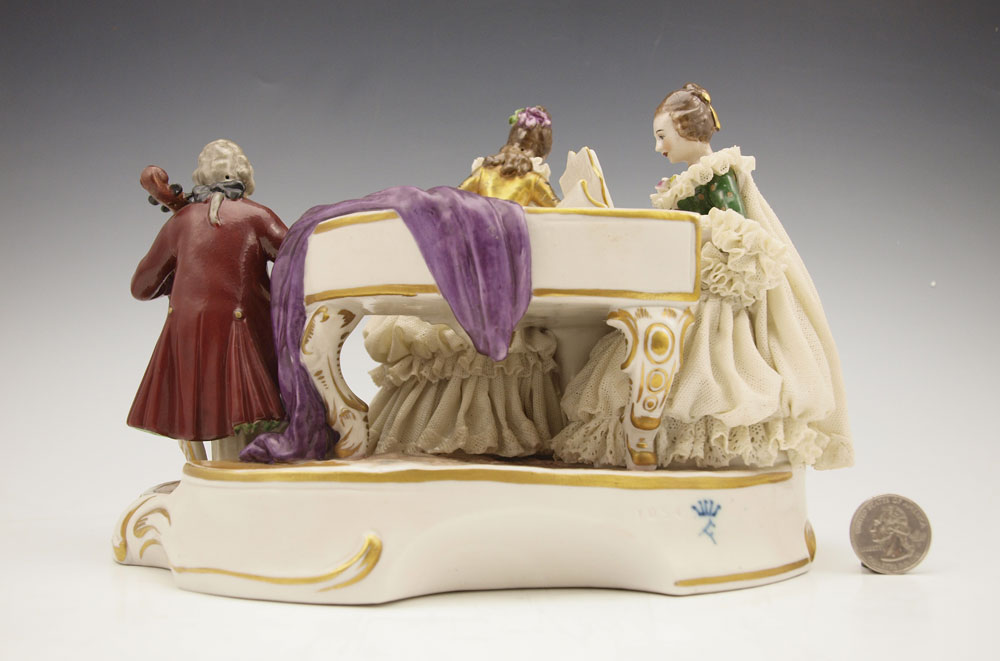 FURSTENBURG LACY FIGURAL MUSIC GROUP WITH PIANO: Approx. 7'' tall x 9 1/2''.