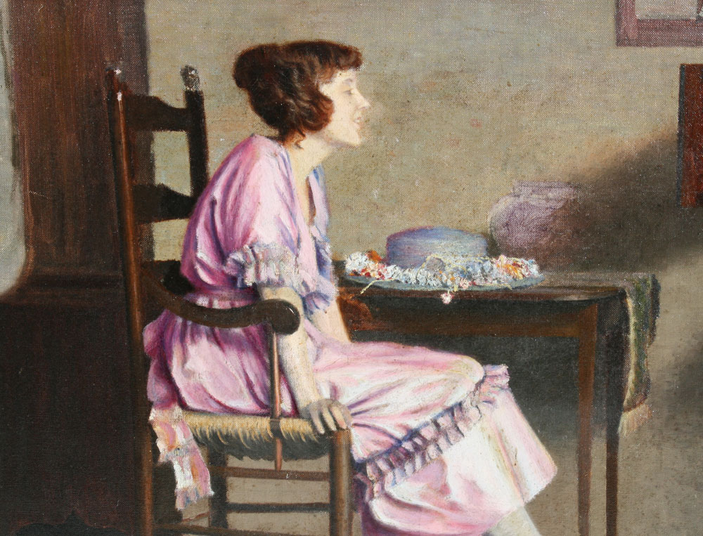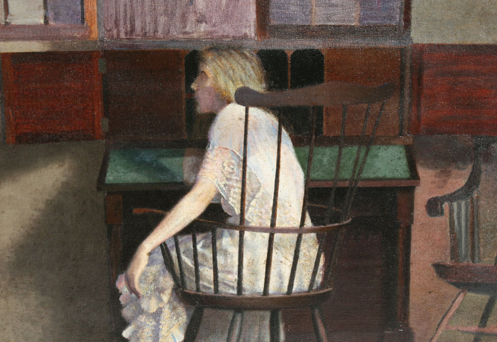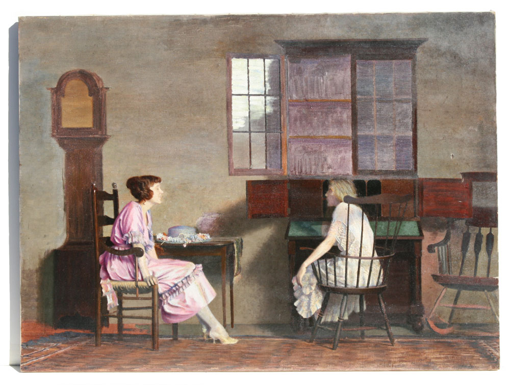 KENNARD, Waldo, (American, 19th/20th Century): Interior Scene with Two Seated Young Women having a Conversation, OIL/Canvas, unsigned, 24'' x 40'', unframed. Est. $600/900**