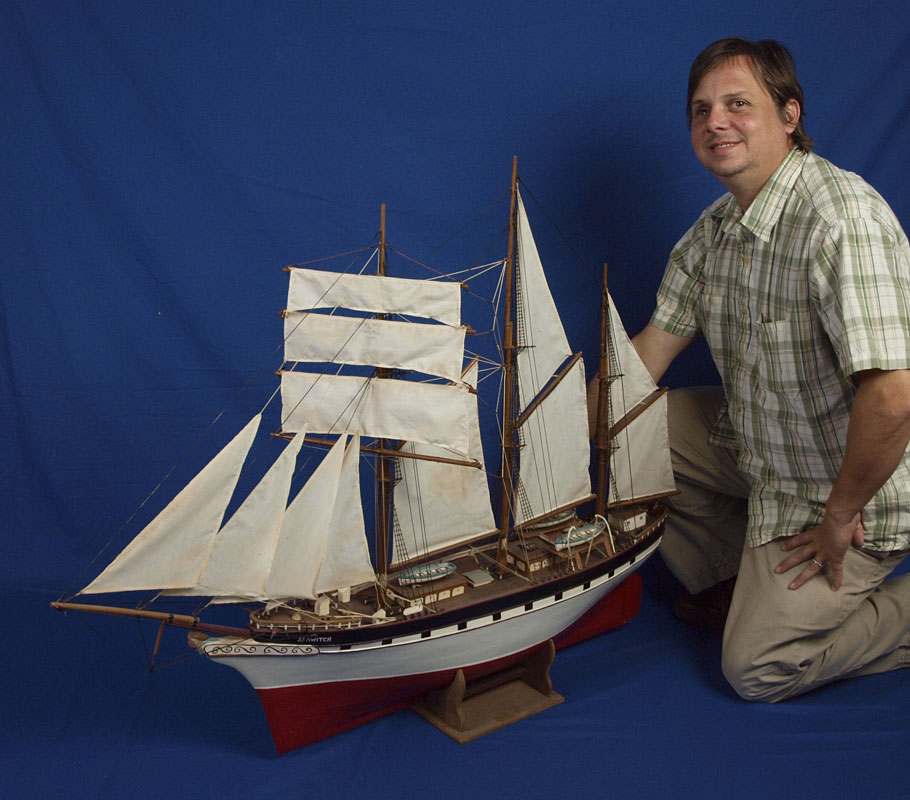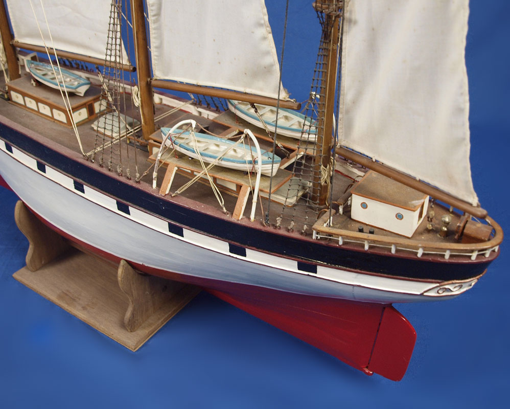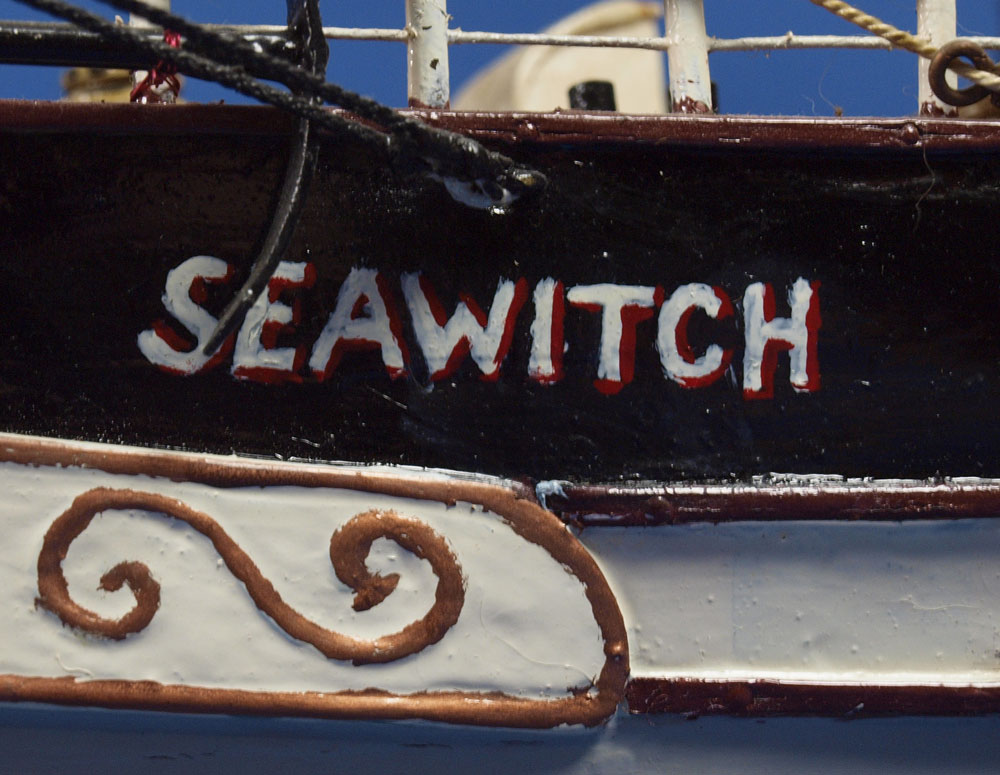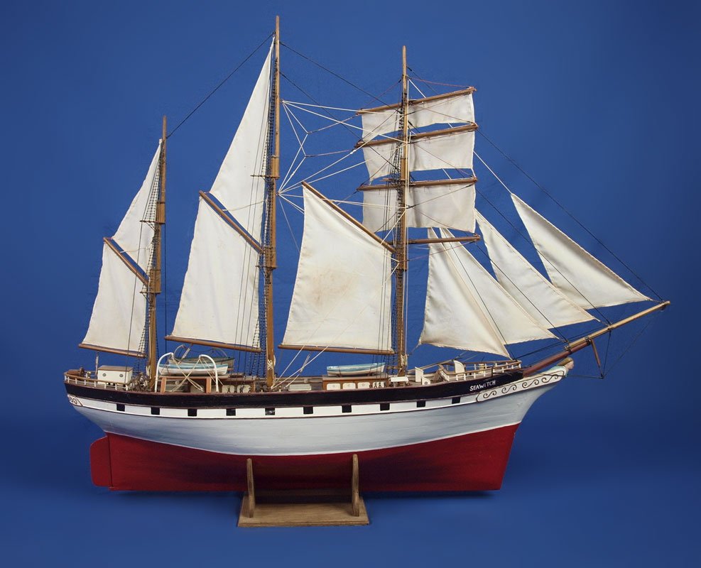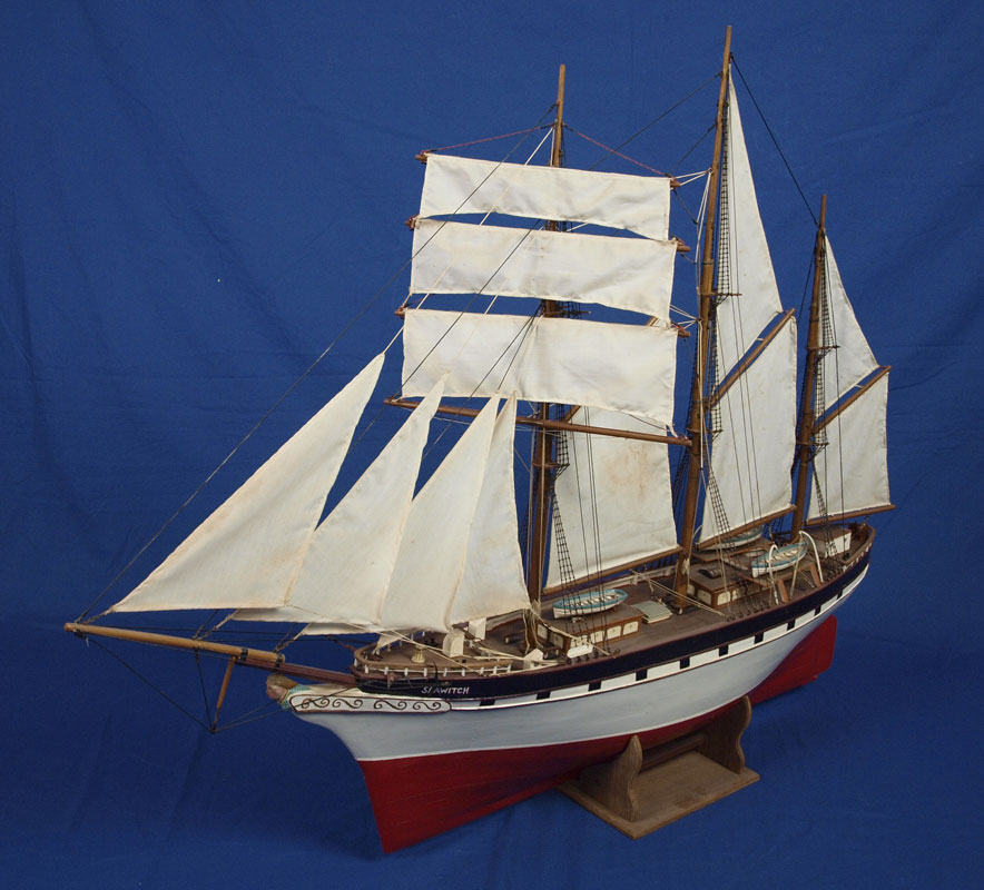 HANDMADE MODEL OF THE SCHOONER SEA WITCH: Hand made by the late John Smith, Shipwright to the Northern Lighthouse Board. Complete with sails, riggings, lifeboats and stand. Measures 37 3/4'' h. x 48 1/2'' x 8''.