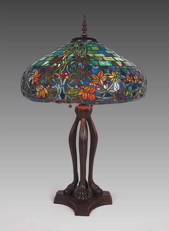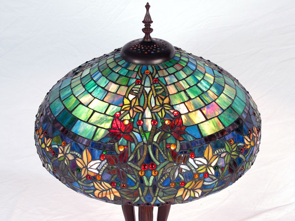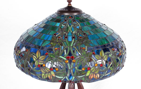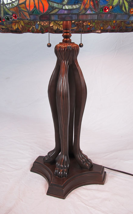 CONTEMPORARY LEADED GLASS TABLE LAMP: Bronzed style base, domed shade. Approx. 34''h., shade is 21'' dia. For a second matching lamp see next lot 233A.
