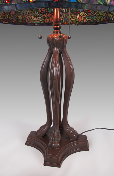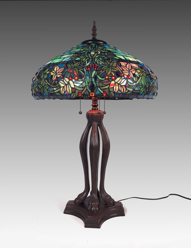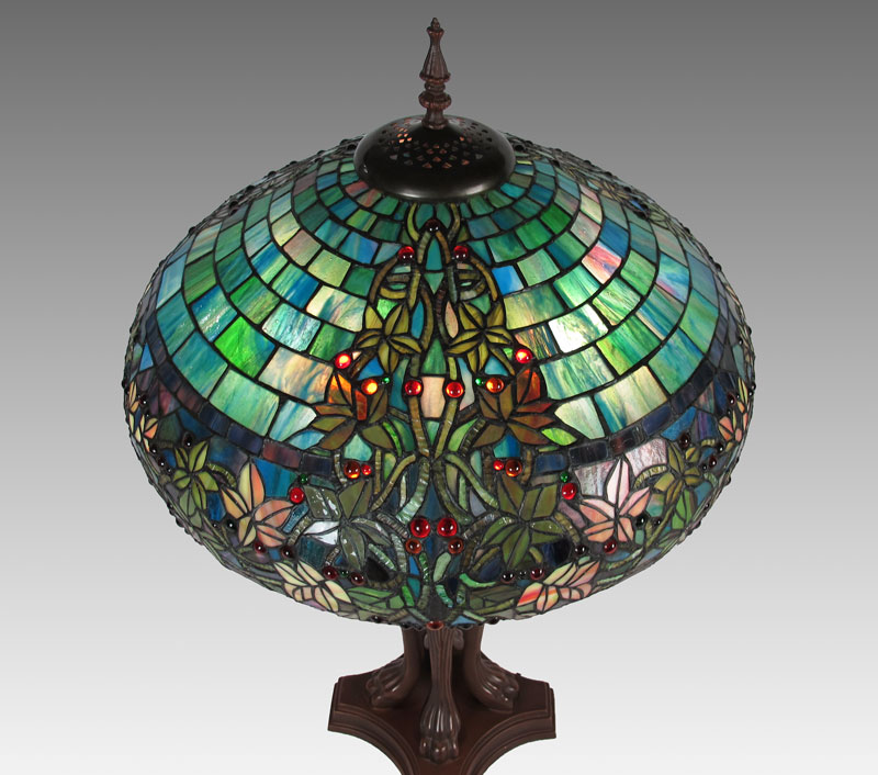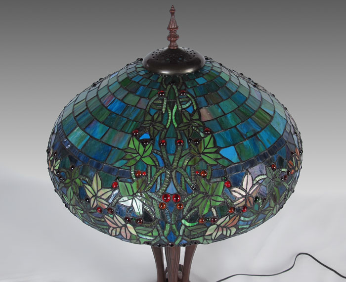 CONTEMPORARY LEADED GLASS TABLE LAMP: Bronzed style base, domed shade. Approx. 34''h., shade is 21'' dia. For a second matching lamp see previous lot 233.