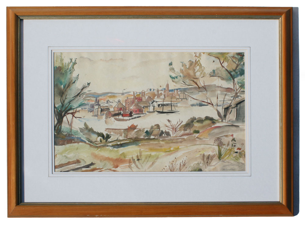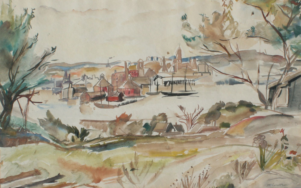 BERNSTEIN, Theresa, (American, 1895-): Harbor Scene from the Hillside'', Watercolor, sight size 14'' x 21'', signed lower right, wood frame, 25'' x 32''.