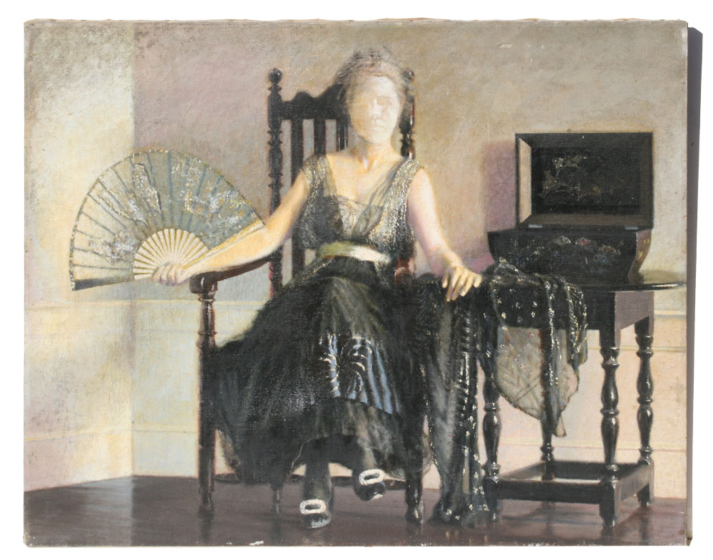 KENNARD, Waldo, (American, 19th/20th Century): Woman with Fan Seated in an Interior, OIL/Canvas, 26'' x 32'', signed, unframed. Est. $500/800**