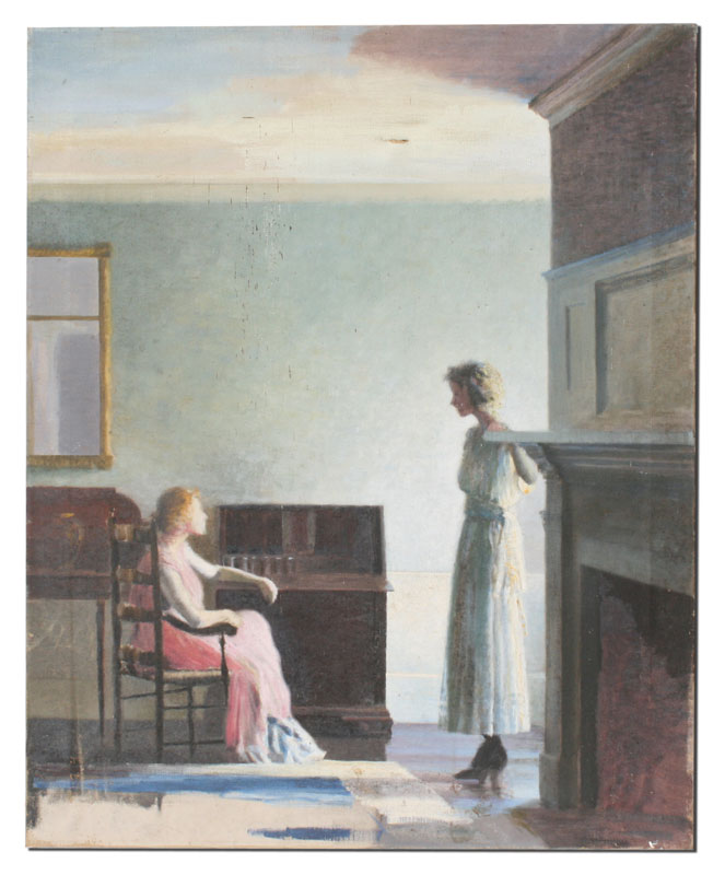 KENNARD, Waldo, (American, 19th/20th Century): Two Young Women Conversing in an Interior, OIL/Canvas, 32'' x 26'', no visible signature, unframed. Est. $500/800**