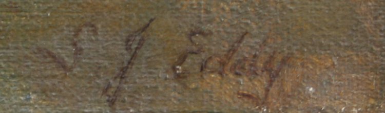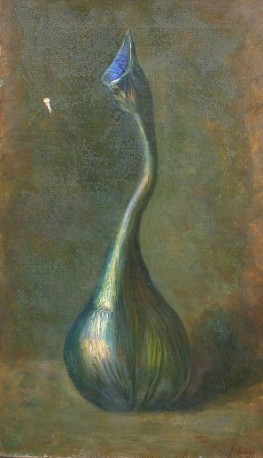 EDDY, Sarah James, (American, 1851-): Tiffany Favrile Rosewater Sprinkler, O/C, 22'' x 13'', Signed lower right, unframed. Artist exhibited at the Boston AC, PAFA. Small abrasion with tear. Est. $500/800**