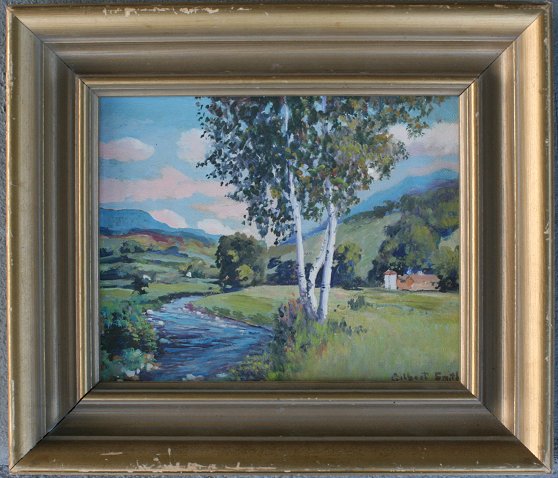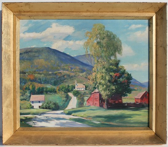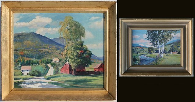 SMITH, Gilbert Haven, (1882-1959): Pair of Vermont Landscapes. 1) Winding Country Road with Mountains in the Distance, 20'' x 24'', signed, gold frame 25'' x 29''. 2) Mettoweave Valley Near East Rupert, Vermont, OIL/Canvasboard, 8'' x 10'', signed, framed, 12 1/2'' x 14 1/2'', titled and signed verso. Est. $600/800**