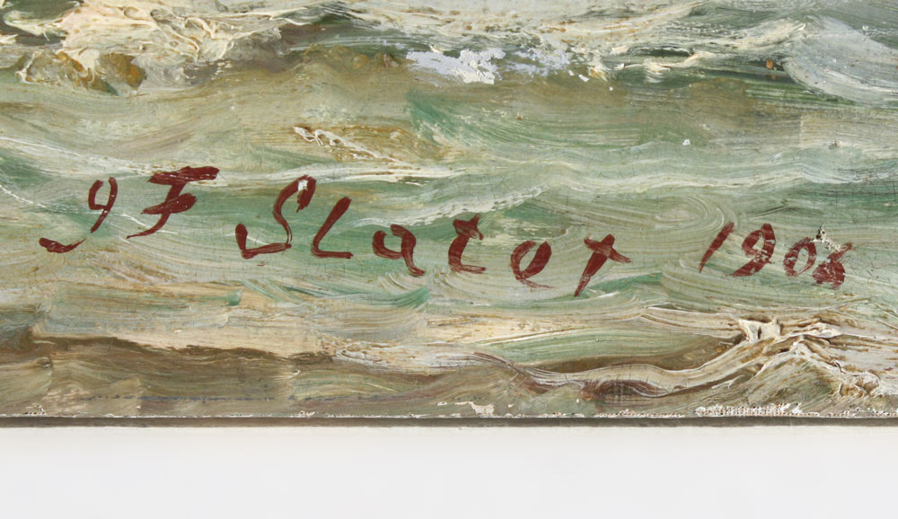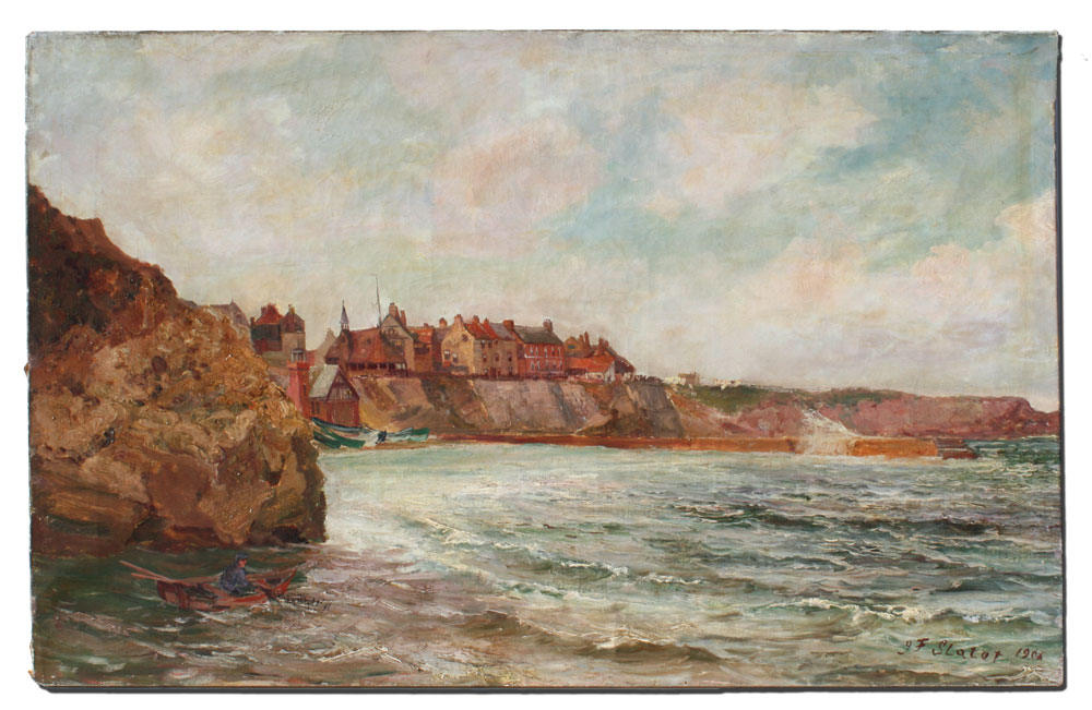 SLATER, John Falconar, (Britain, 1857-1937): Cullercoats Harbor, OIL/Canvas, 25'' x 39 1/2'', signed, dated, 1906, unframed.