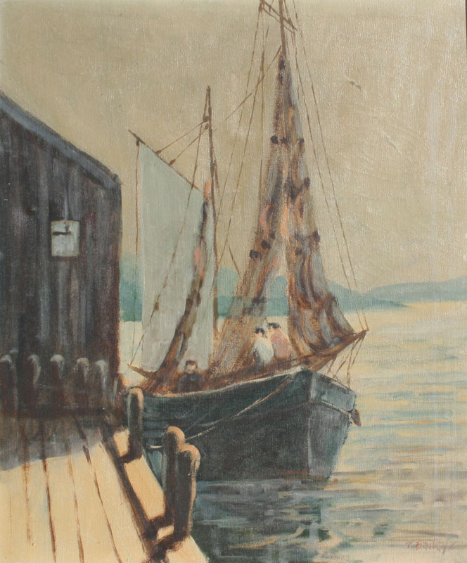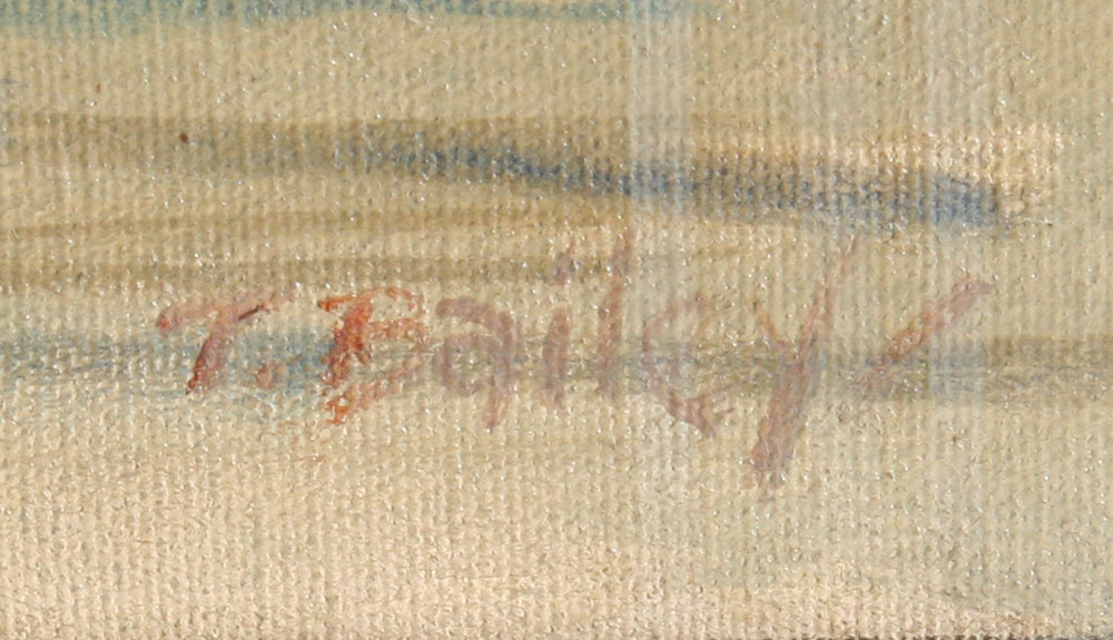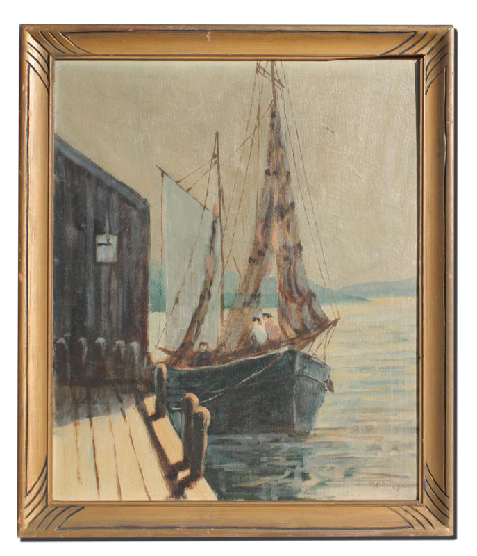 THOMAS BAILEY AKA WILLIAM PASKELL DOCKSIDE SCENE: OIL/Canvas, 24'' x 20'', signed, encased in gilded and incised frame with ebonized accents showing wear, 27 1/2'' x 23 1/2''. Est. $400/600**