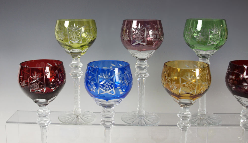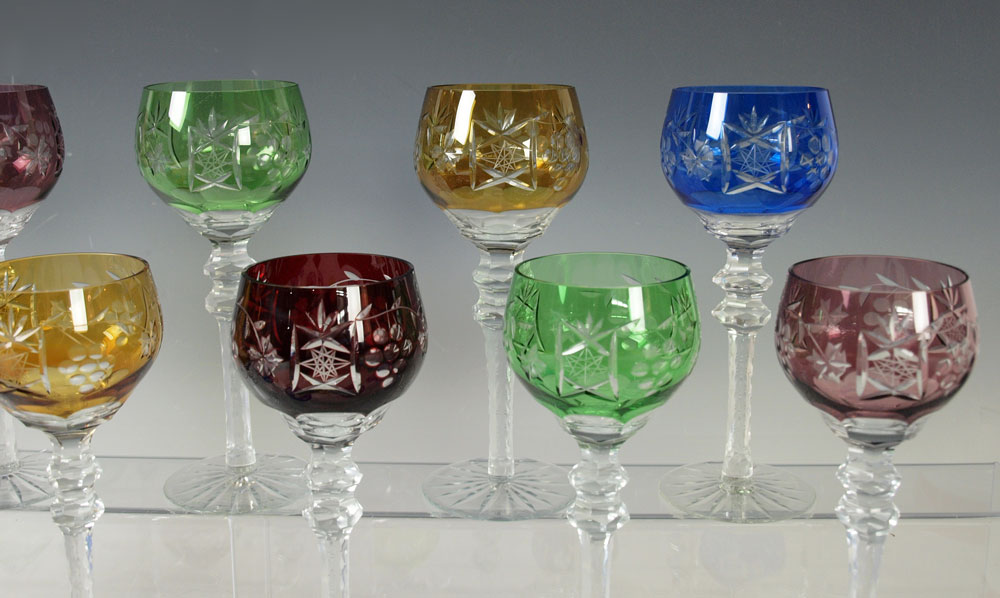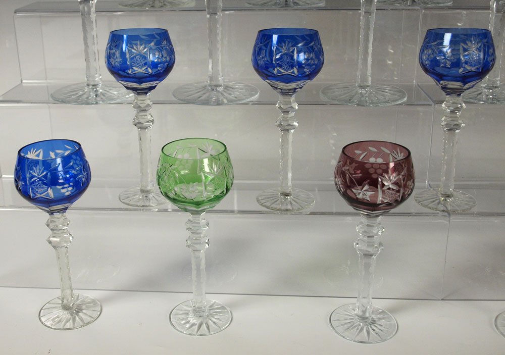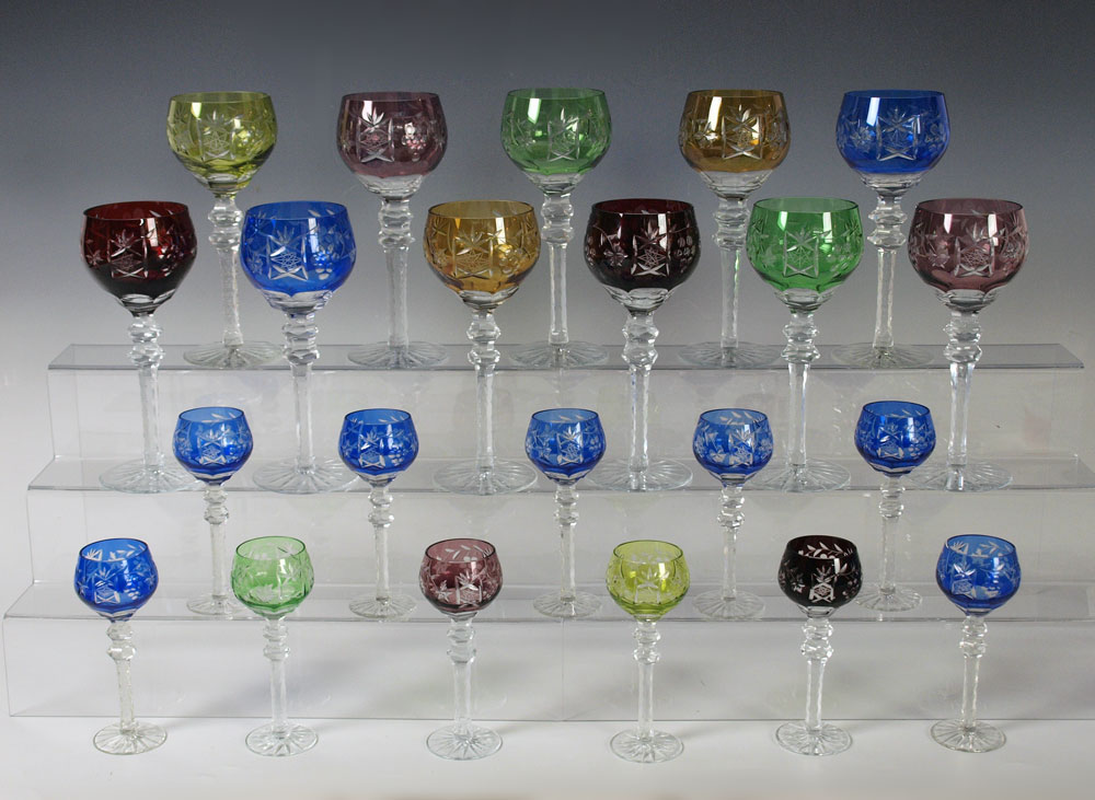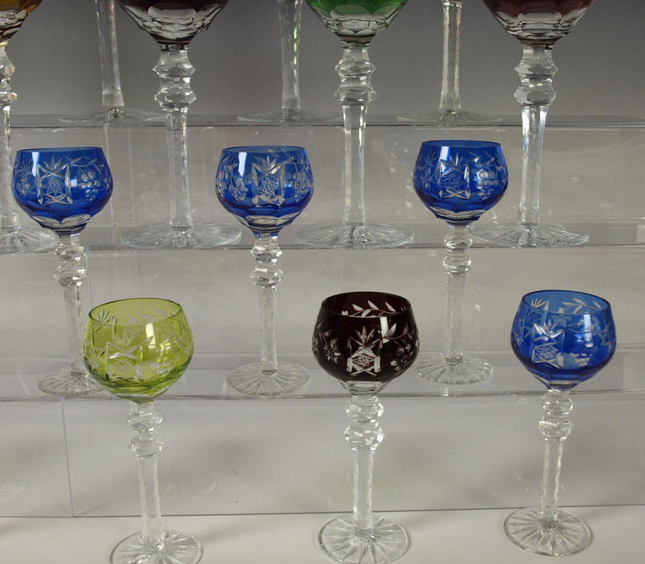 22 BOHEMIAN CUT TO CLEAR WINE AND CORDIAL GOBLETS: 11 wine goblets, 8 1/2''h. 11 cordials, 5 3/4''.