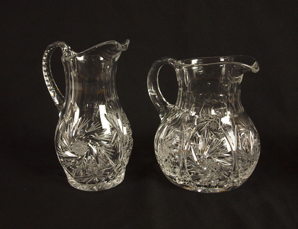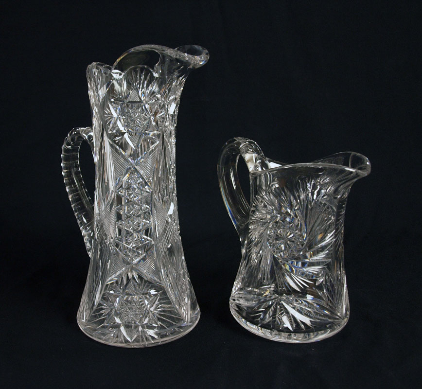 GROUP OF 4 BRILLIANT CUT GLASS WATER PITCHERS: Approx. 7 1/2 - to the towering 12'' slender pitcher.