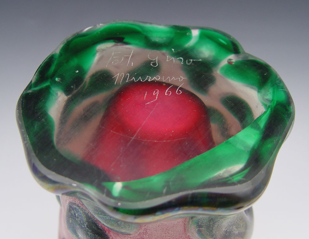 GINO FORT SIGNED MURANO GLASS VASE: Large heavy vase, signed Fort. Gino Murano 1966. 11'' h. x 7 1/4'' dia.