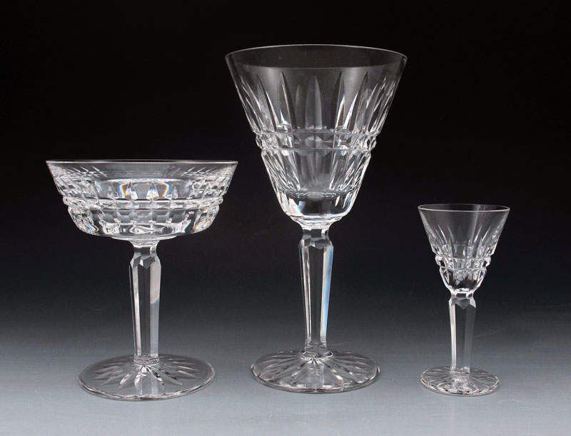 WATERFORD GLENMORE: 21 stems to include 7 water (7''), 5 champagne sherberts (4 3/4''), 4 wine (6 3/4''), and 5 cordials ( 3 3/4'').