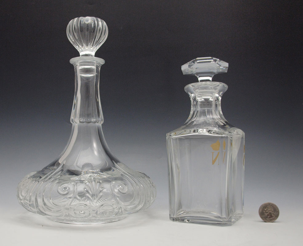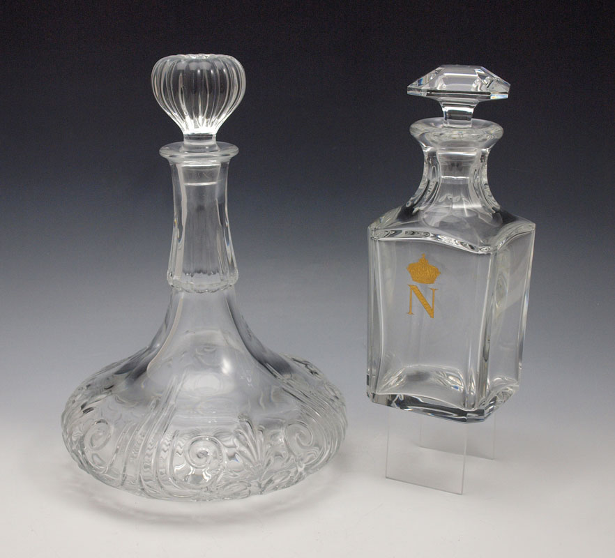 2 BACCARAT CRYSTAL DECANTERS: Both with Baccarat mark. Larger measures 10 1/2'' x 7 1/4''.