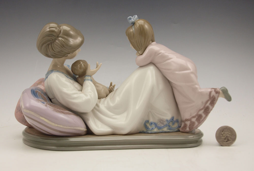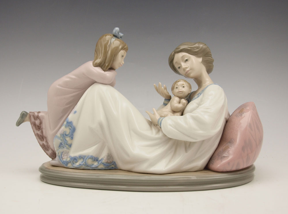LLADRO LATEST ADDITION 1606: Issued 1989, retired 2007, 6 1/4'' x 10 3/4'' x 5 3/4'', with box, 8'' x 13 1/2'' x 9 1/4''.