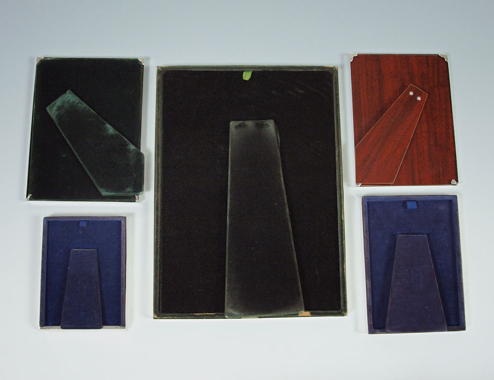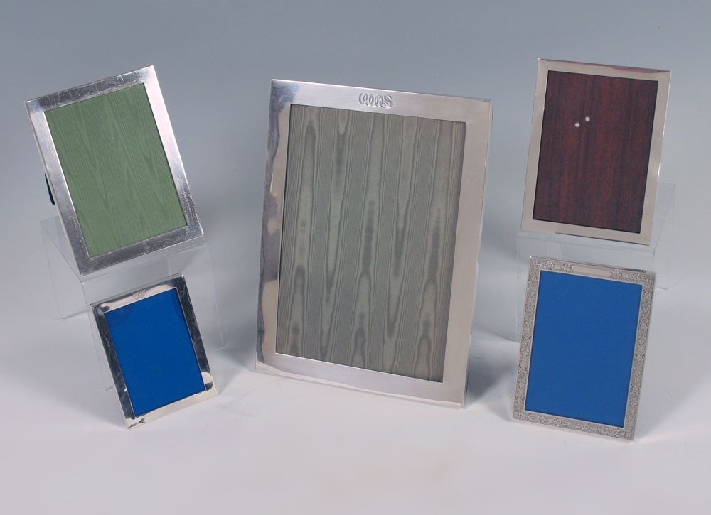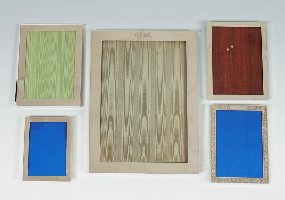 5 STERLING SILVER FRAMES: Easel back table top sterling picture frames by assorted makers to include Unger Brothers, Gorham, International Silver. Largest measures 13 5/8'' x 10 1/8''.