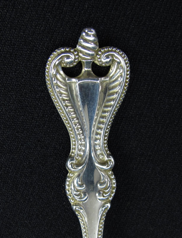 TOWLE STERLING FRUIT SPOONS & OLD MASTER FLATWARE: 26 pieces to include 19 fruit spoons (5 1/2'') and sugar spoon (5 7/8'') in the Old Colonial pattern. Some monogrammed. Sold with 2 forks (7 1/4''), 2 teaspoons (6''), 2 hollow knives (8 3/4'') and sugar spoon (5 3/4'') in the Old Master pattern. All Old Master is in original packaging. Approx 25.3 troy oz.