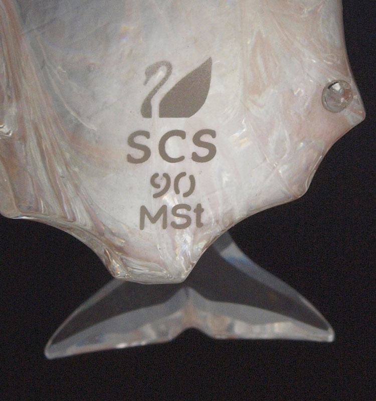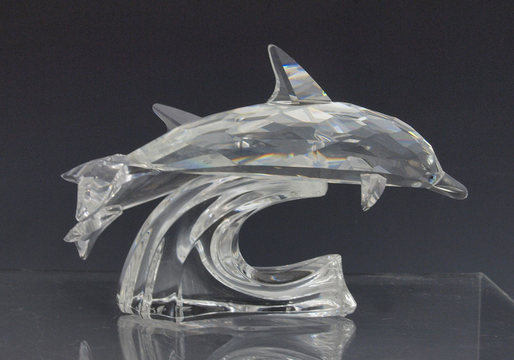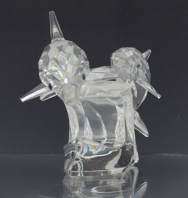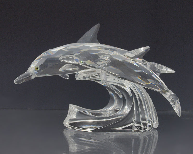 SWAROVSKI COLLECTORS SOCIETY 1990 LEAD ME - THE DOLPHINS: Michael Stamey designer, 3''h., forth in a series of Annual Editions, sold with certificate and original round box, approx. 7 1/2'' x 7 1/4''dia.