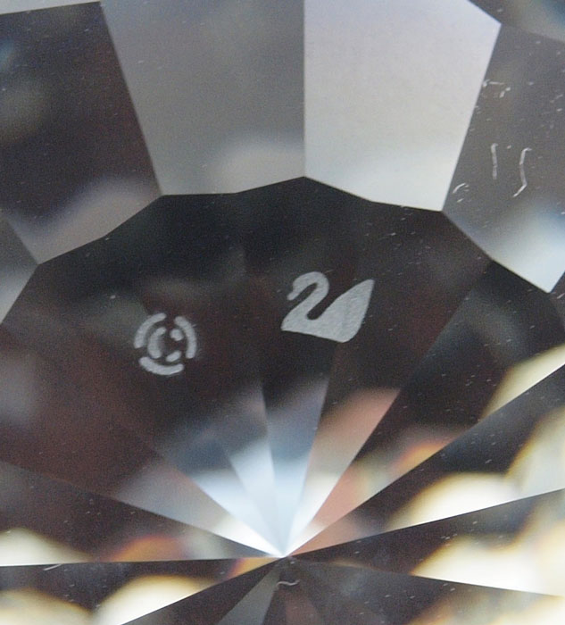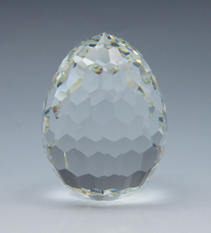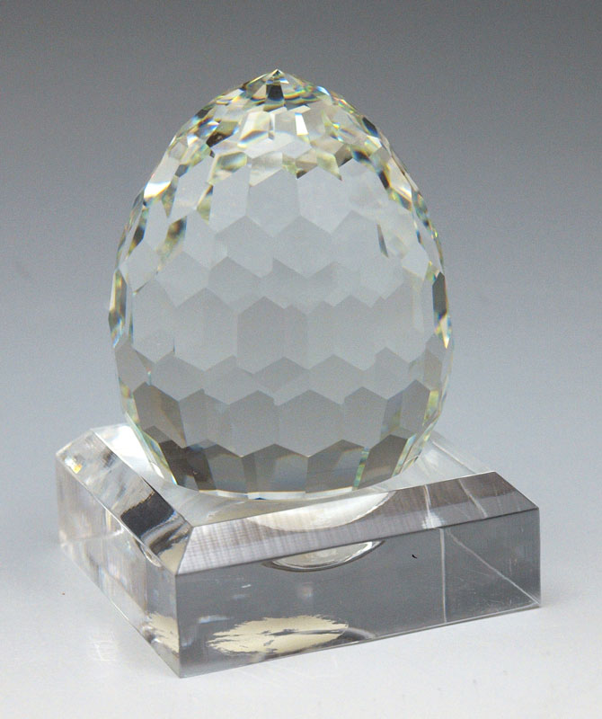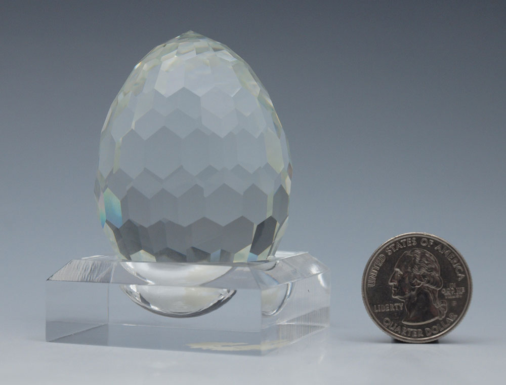 SWAROVSKI CRYSTAL EGG: Max Schreck designer, 1979, 2 3/8'' faceted egg, Swan mark, with Lucite stand.
