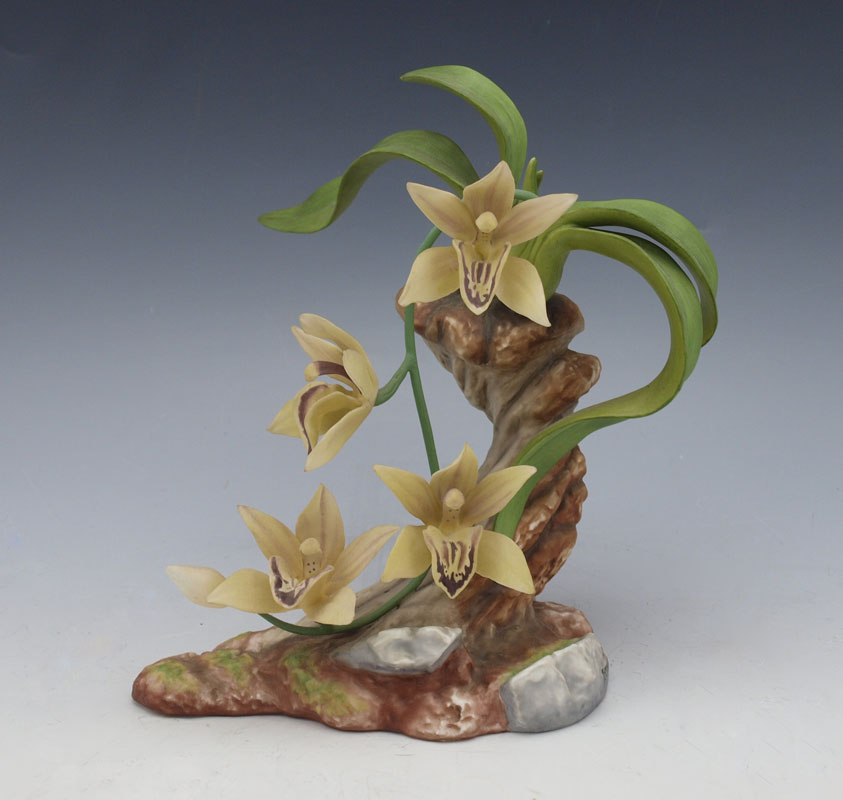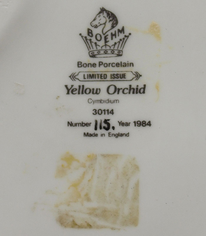 BOEHM PORCELAIN YELLOW ORCHID: 30114. Limited issue, this is number 115, year 1984. 7''h. x 7 1/2''.