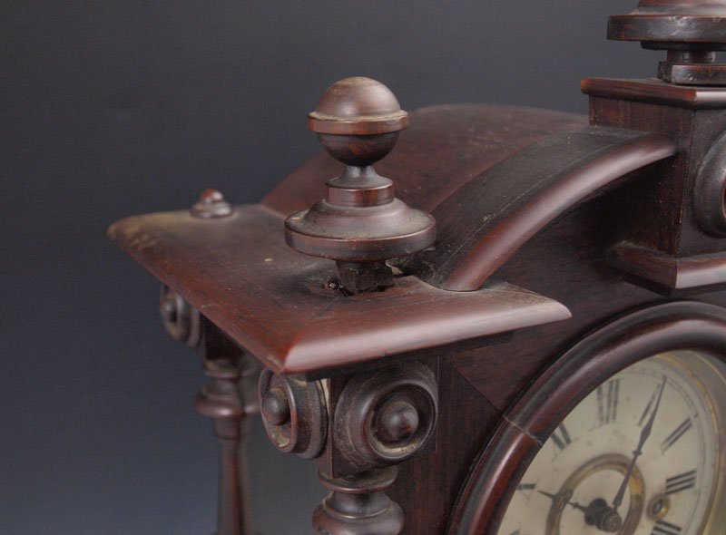 CONDITION: Note repairs to finials, loss of veneer on top.