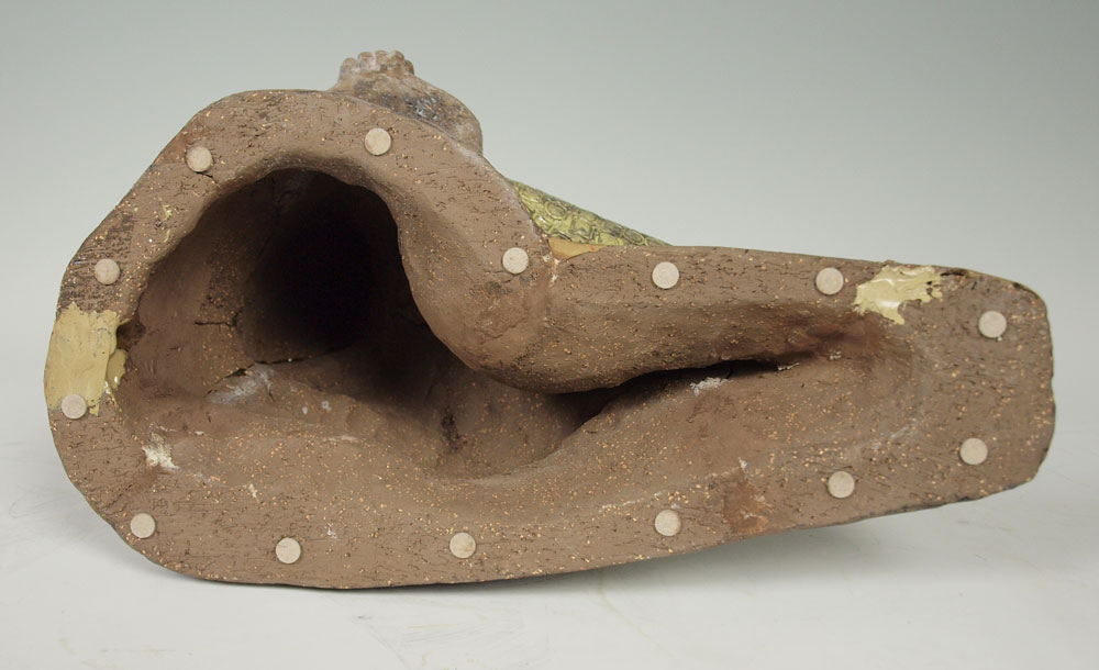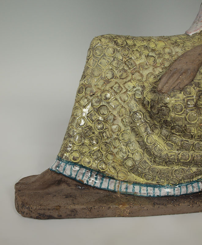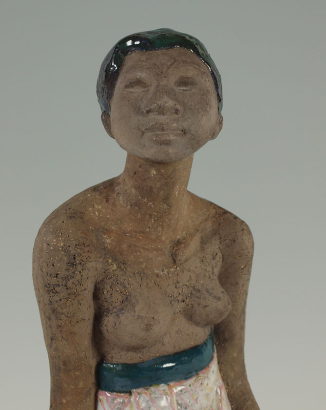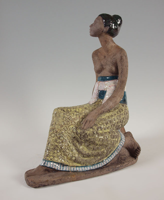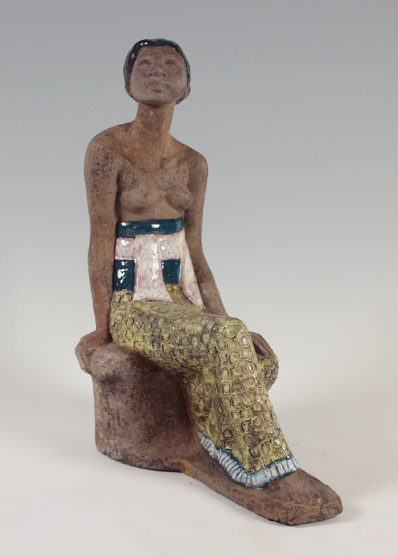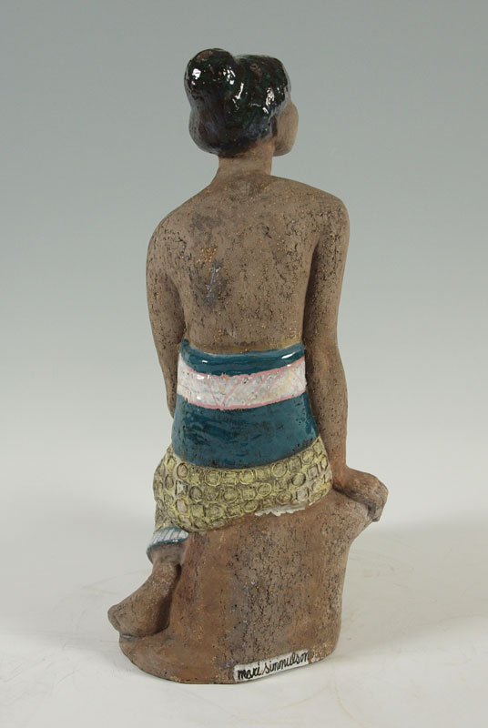 SIMMULSON, Mari, (1911-2000): Balinese Partially Nude Seated Woman, Glazed Terra Cotta Sculpture, 20'' x 14 1/2'', signed on the base. Est. $600/800**